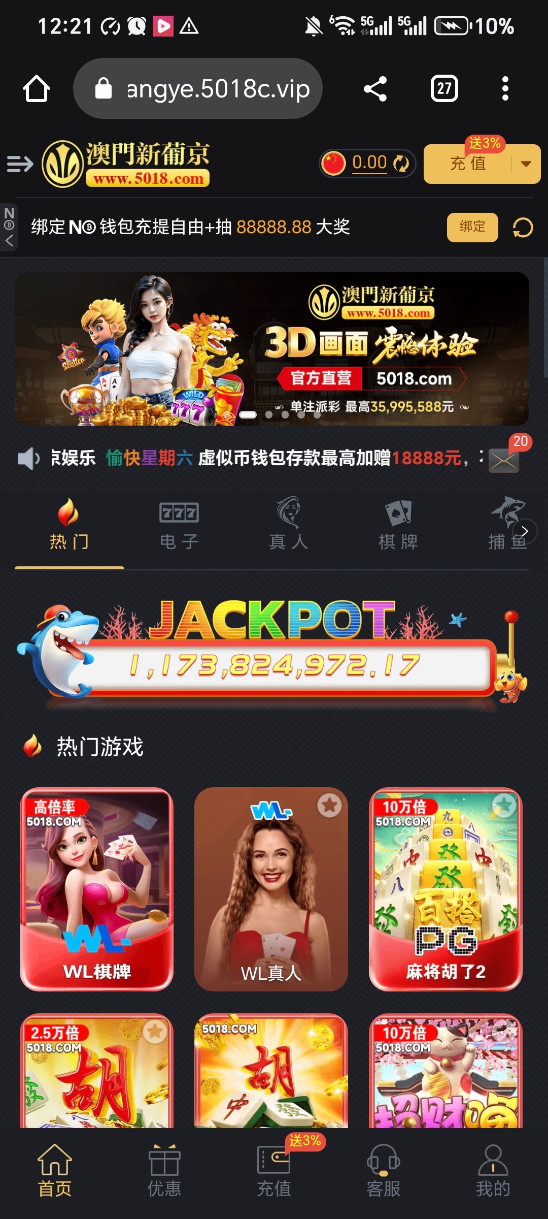 新葡京5018,这台子有人玩过吗老哥们?刚接到特邀电话说送彩金,结果没有,然后找客服说需要充值100送88,彩金5水,本金1水,没敢打怕是黑台。来老哥网这查询了一下,只有一条主题是关于新葡京5018的,并且评论区也没有出款图...说实话有点怕......有玩过的老哥说一声,不黑我就干了