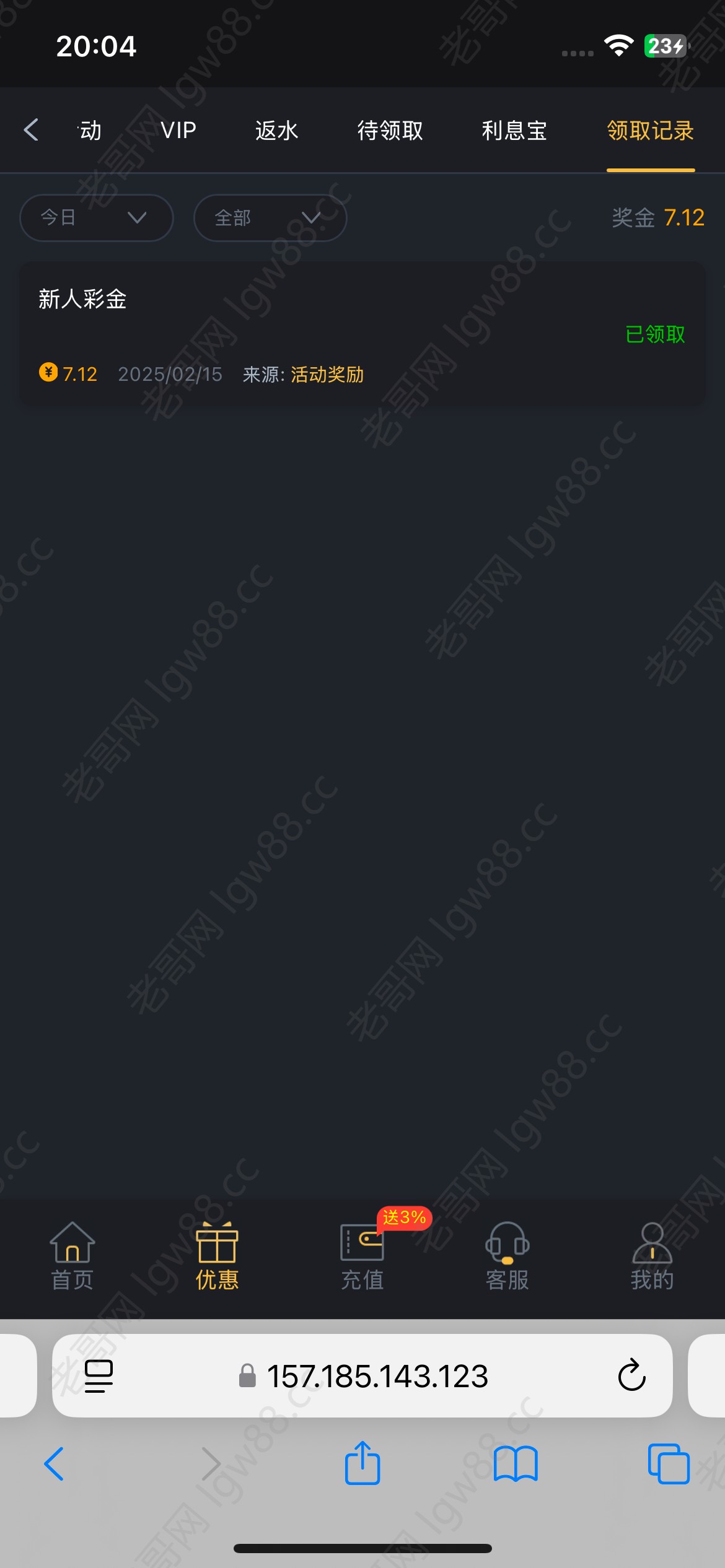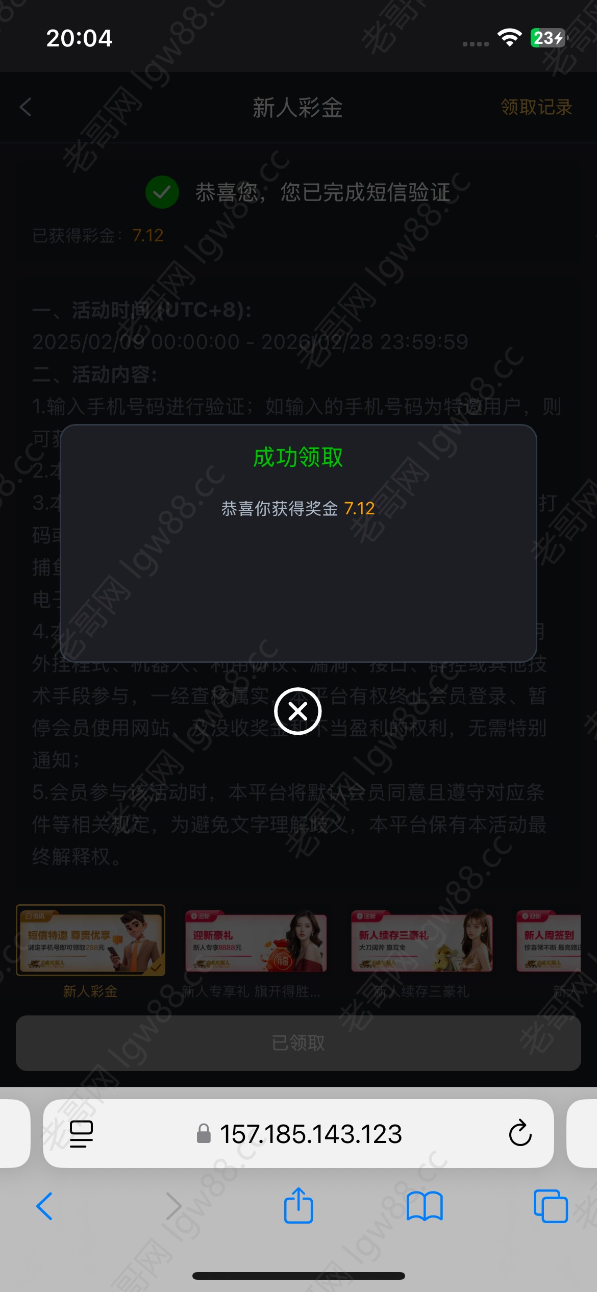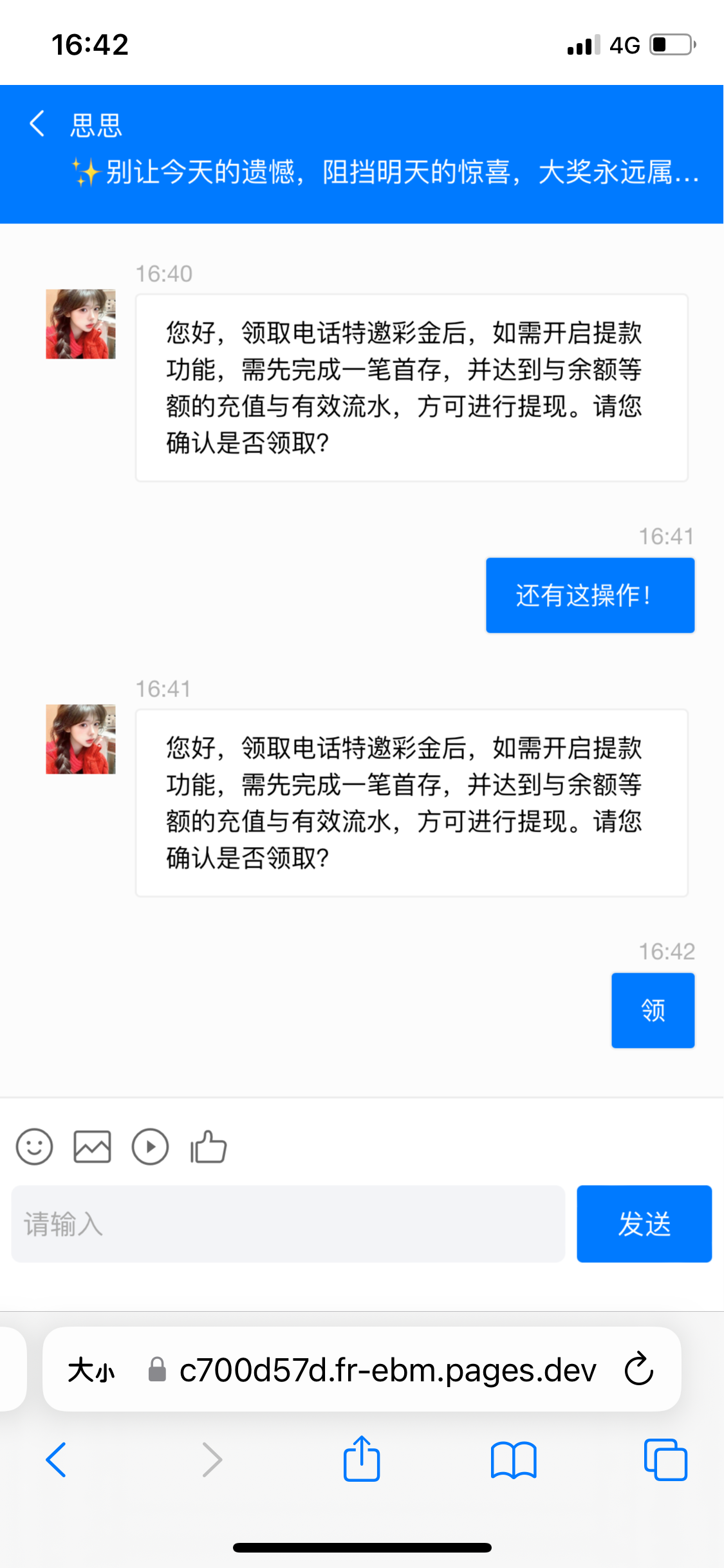 我之前有收到过短信没去鸟他,刚去官网找了下跟777444澳门巴黎人是同一家的有这个活动就申请了一下成功了 赌神自便 出款自测