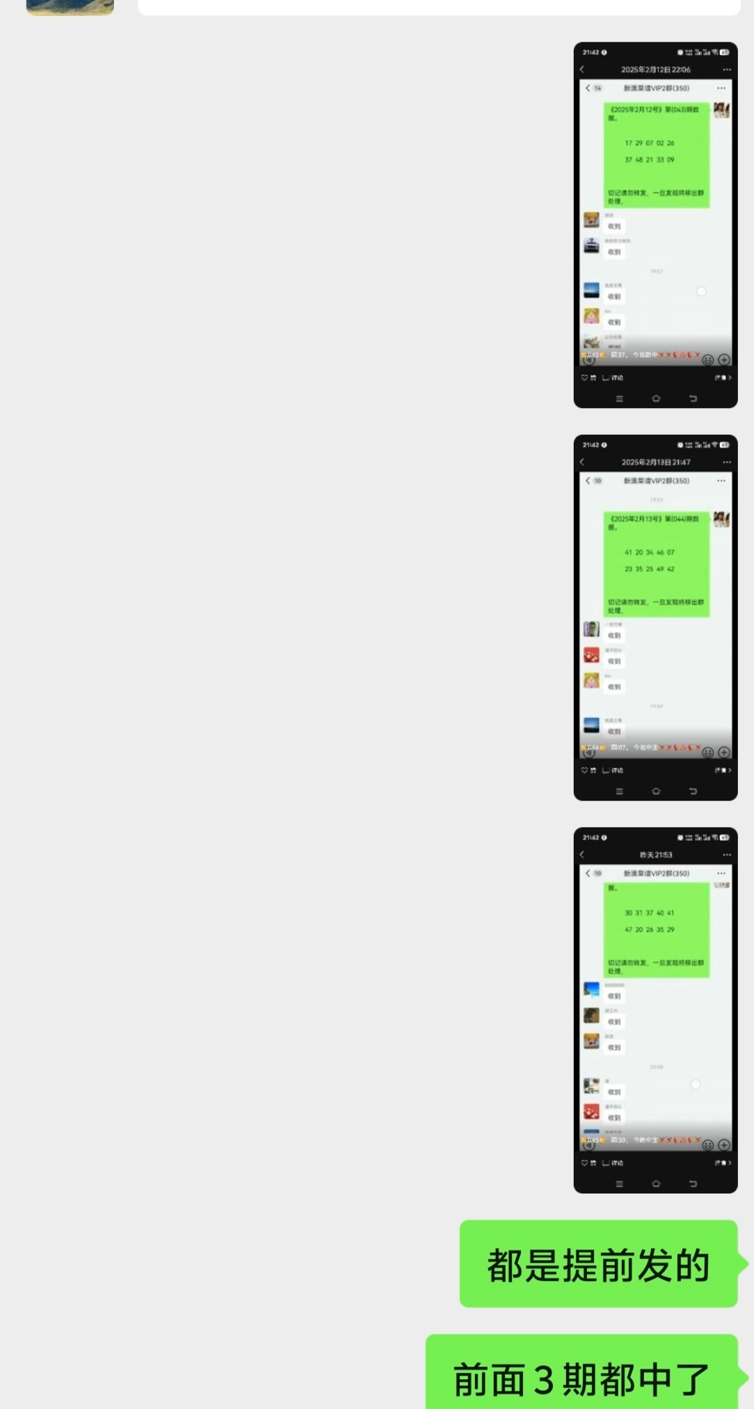 你也是呆 这种所有人都发 发的特码都不一样 其中一个中了 他就说牛不牛逼 不中就套路你说搞错了 稳赚不赔的生意 和以前群发短信说什么内幕消息排列五一个吊样 每个人号码都不一样