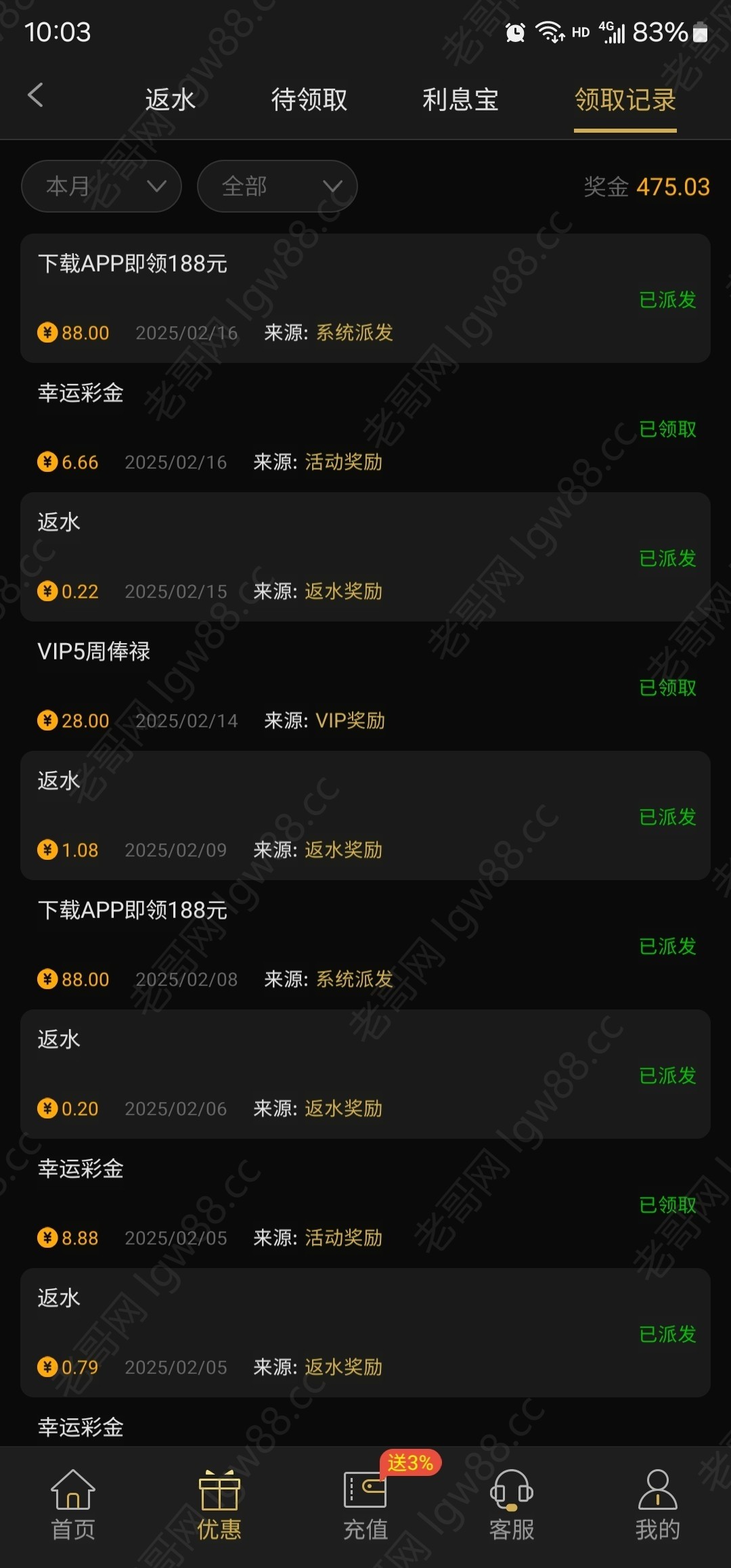 前两天充过100,领了6.66
