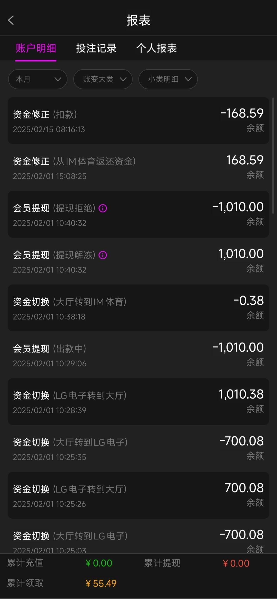 黑b台裸打也直接黑,一个月少说也充了万把块钱了,就是看平台出款秒出才经常玩这台,打了会体育拉了会电子,提交出款没几分钟账号直接被冻,找客服说是系统自动审核的,15天审核完就给解,想着解开了钱会给我退回来,结果全部给我扣了,im里面168也是拉出来给我扣没了,气的我直接屌好几遍客服,理由始终就是系统自动审核,应该有挺多老哥玩过的,之前白嫖会送彩金的,还在玩的抓紧避雷,特别是避雷那些活动回馈多的平台,随便一个理由就能把你黑了说你套利啥的