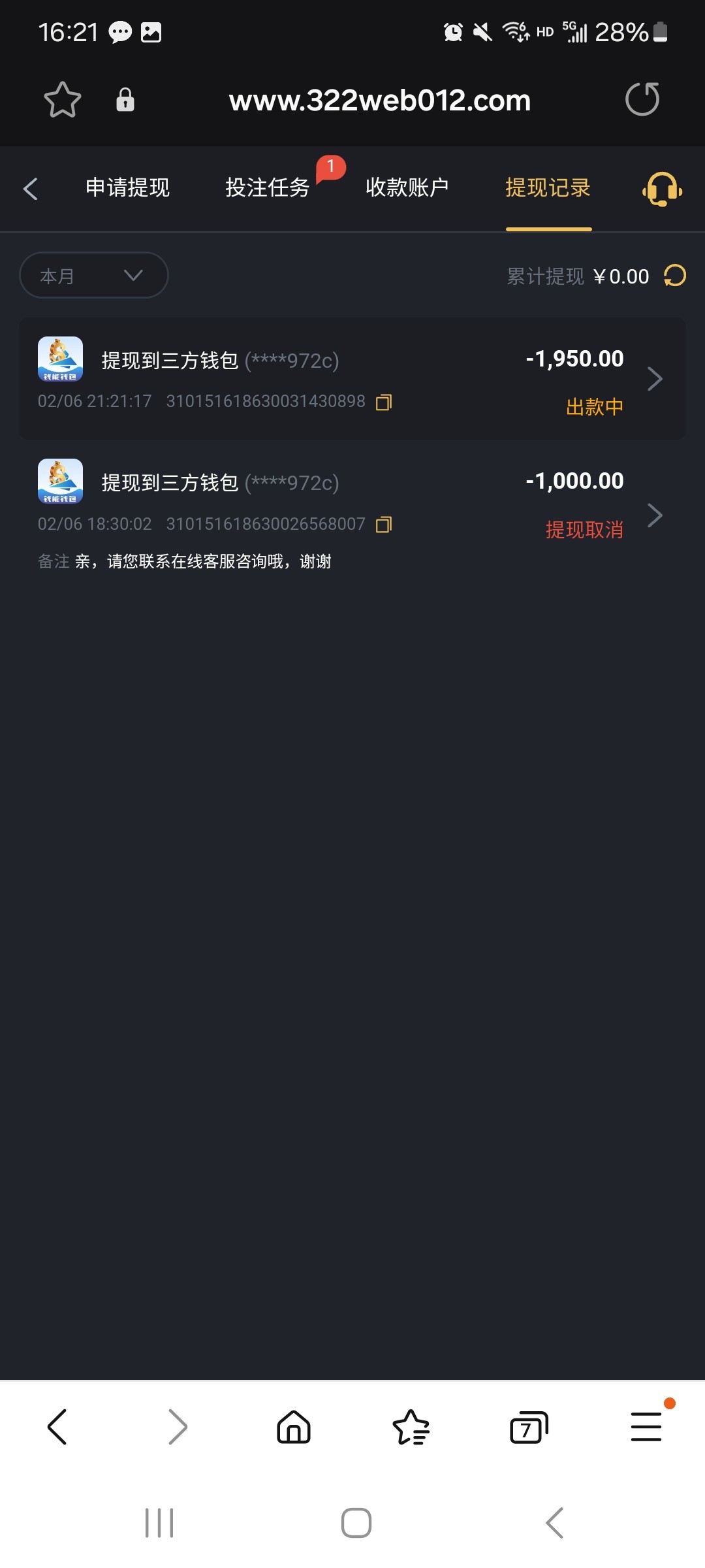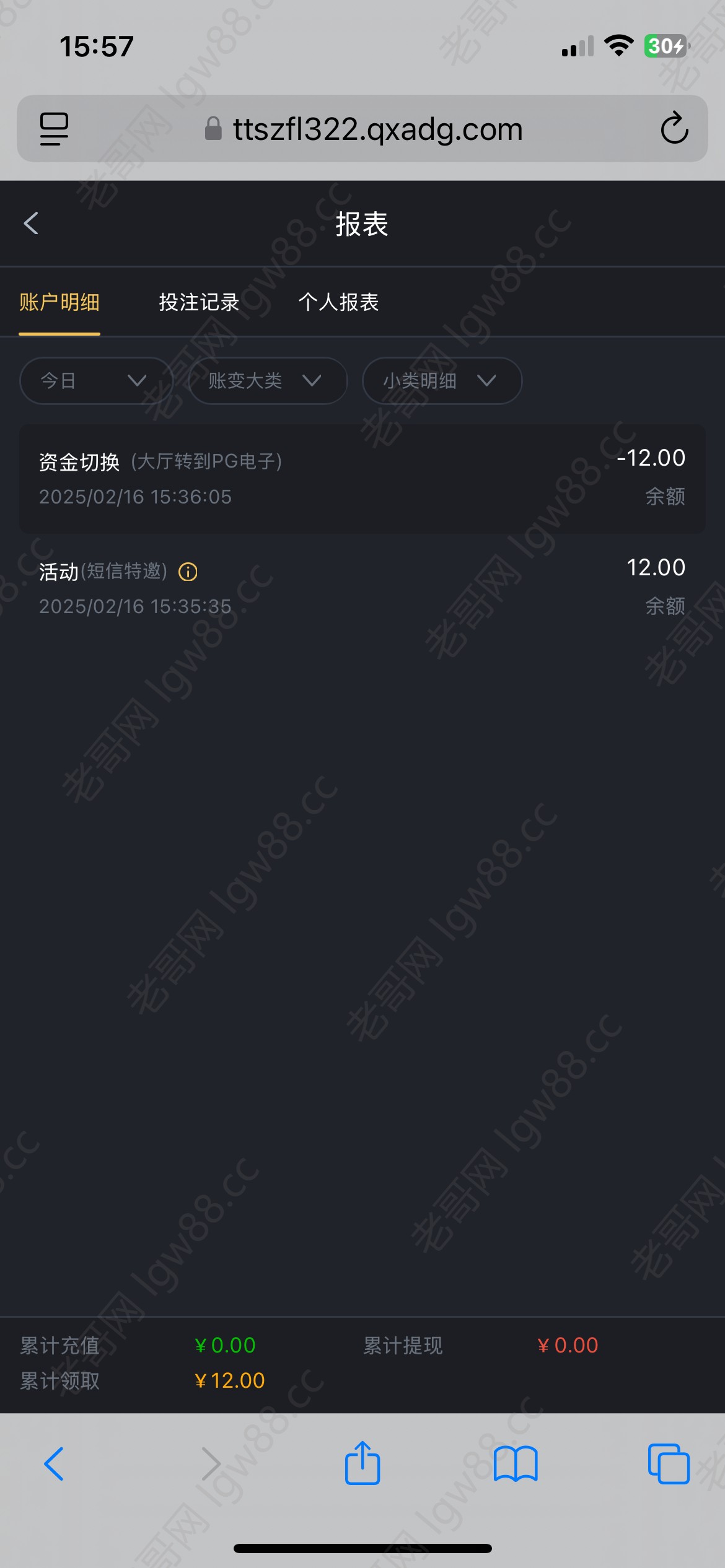 这台子1月份12块钱打出来提了100,当时没黑,也没充过,天天发短信过来