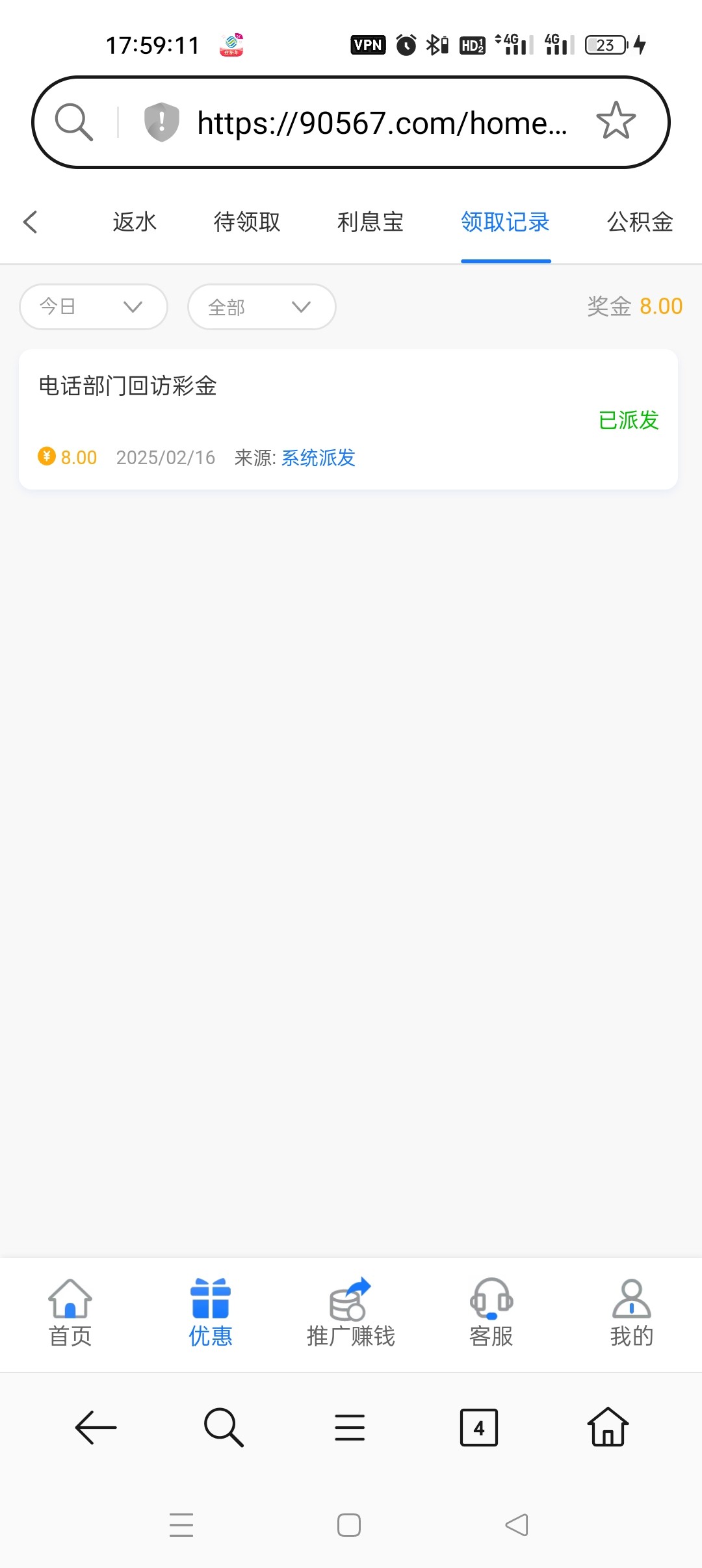 电话打过来,送了188,我过年前充了2000多