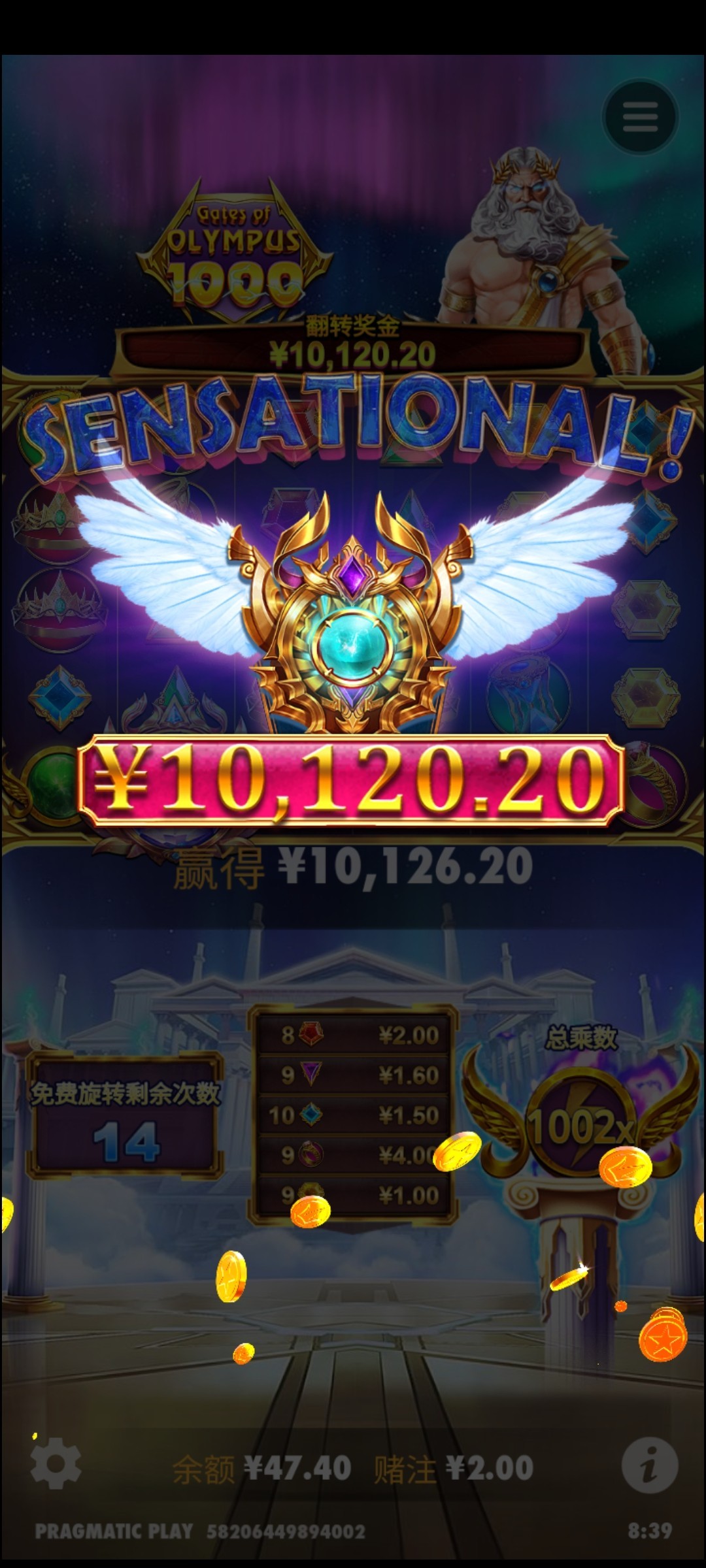 直接掉下来1000爆1w多  15转直接爆分1.9w