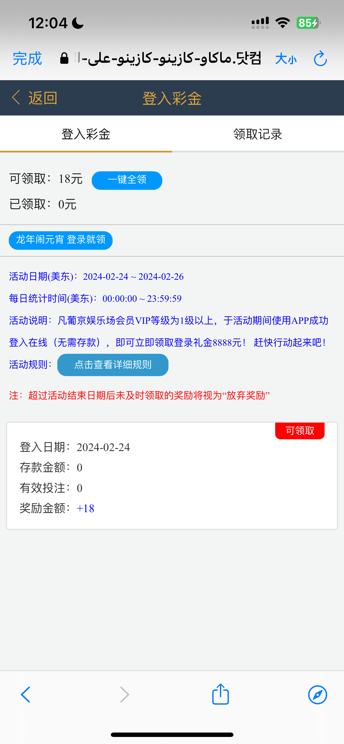 葡京8733的元宵彩金,vip1才能领取,可以领取三天!没玩过的不用注册不会有的。