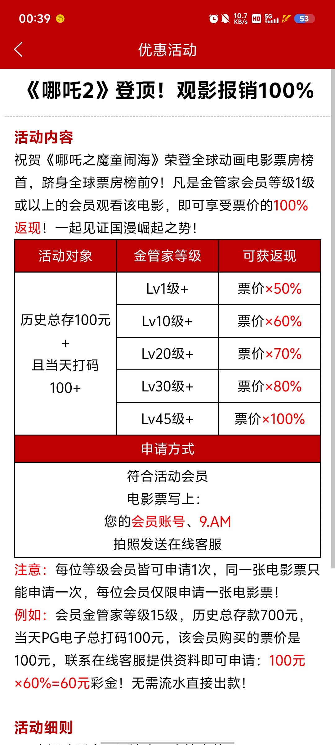 星际娱乐不需要等级历史存款100,当天存款100,电影票写上账号和网址拍照联系客服