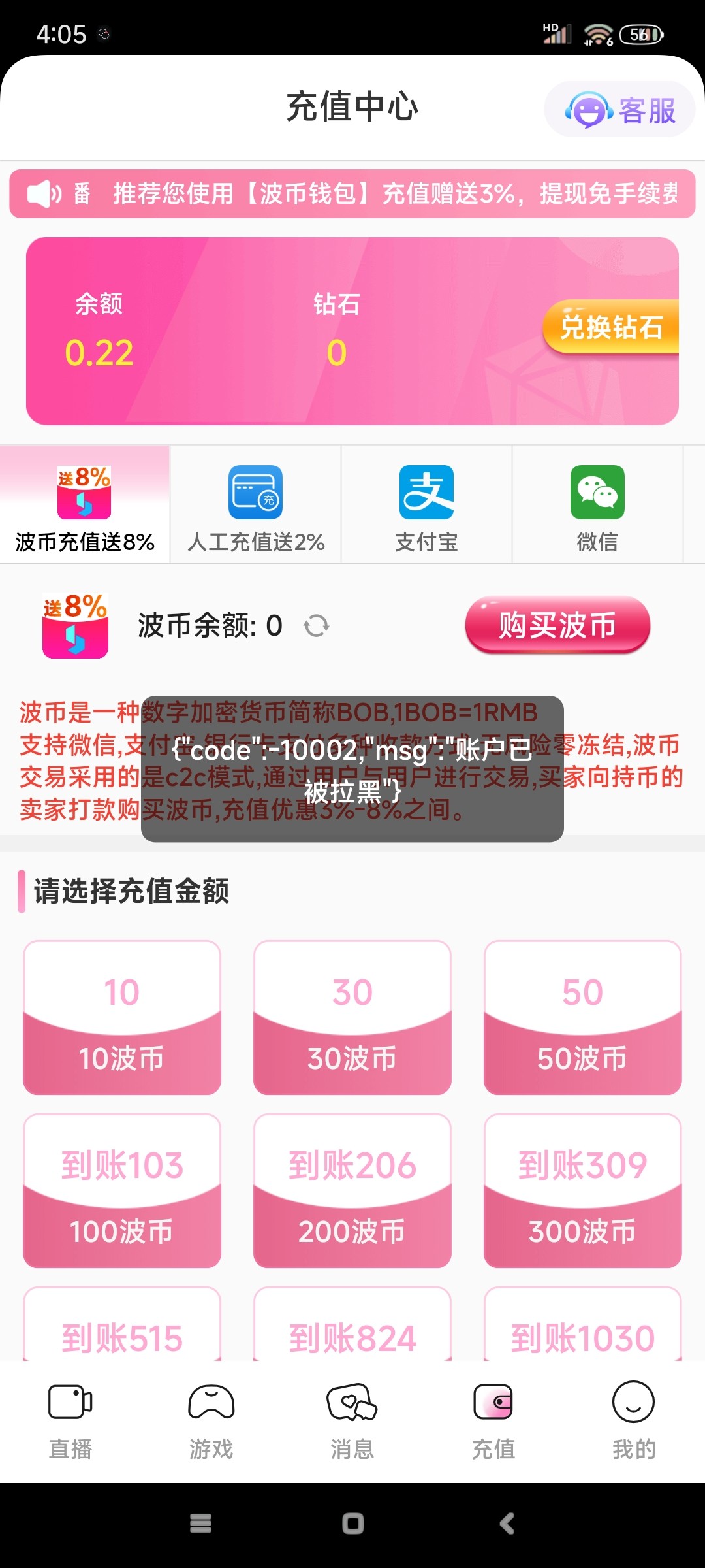 收到短信,充值10块钱试了一下,没想到爆了100,然后提现就被拉黑了。