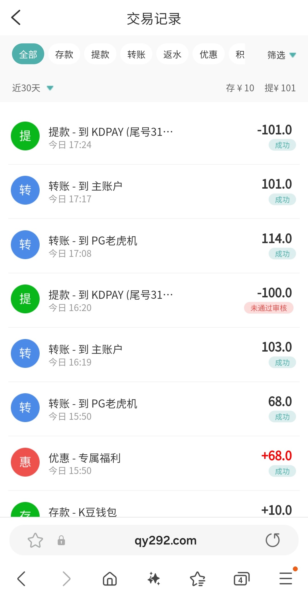 前天10块送68上了250,今天100上2700提700一个多小时了,还没到客服说审核成功了等打款