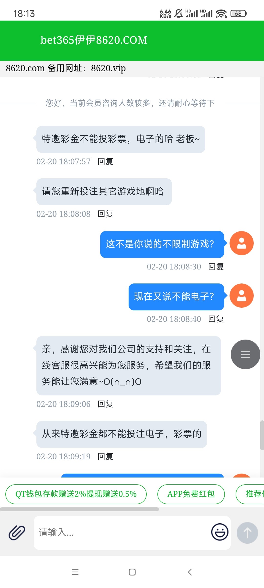 打电话让我去领彩金。。电子搞到130提现变回18。。刚开始还说没有游戏限制,提现就说不能电子。。白开心一场