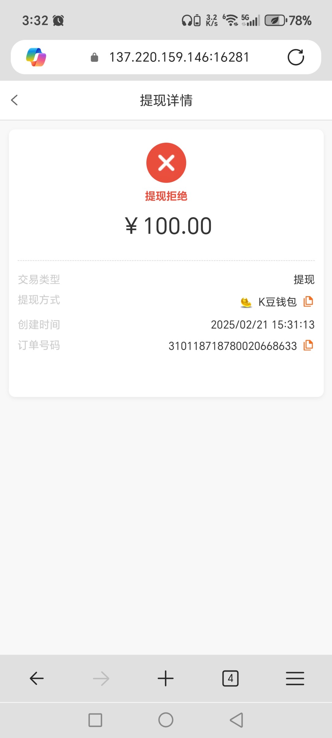 打出来了,提现直接拒绝然后扣掉