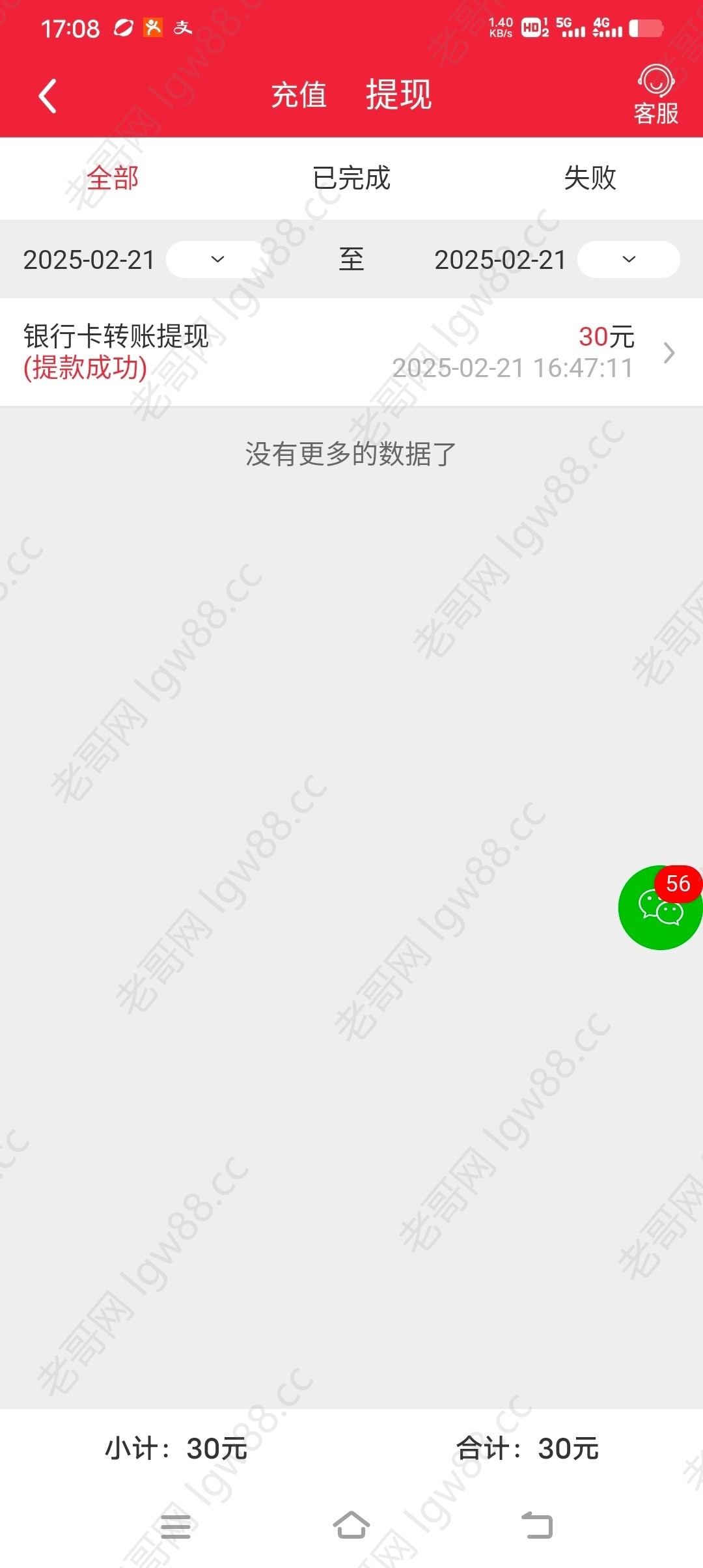 贪心了提现30块到账了 ,他这个是三分彩代打,代打15期正常半个小时就行,自己做短信图去 地址看图