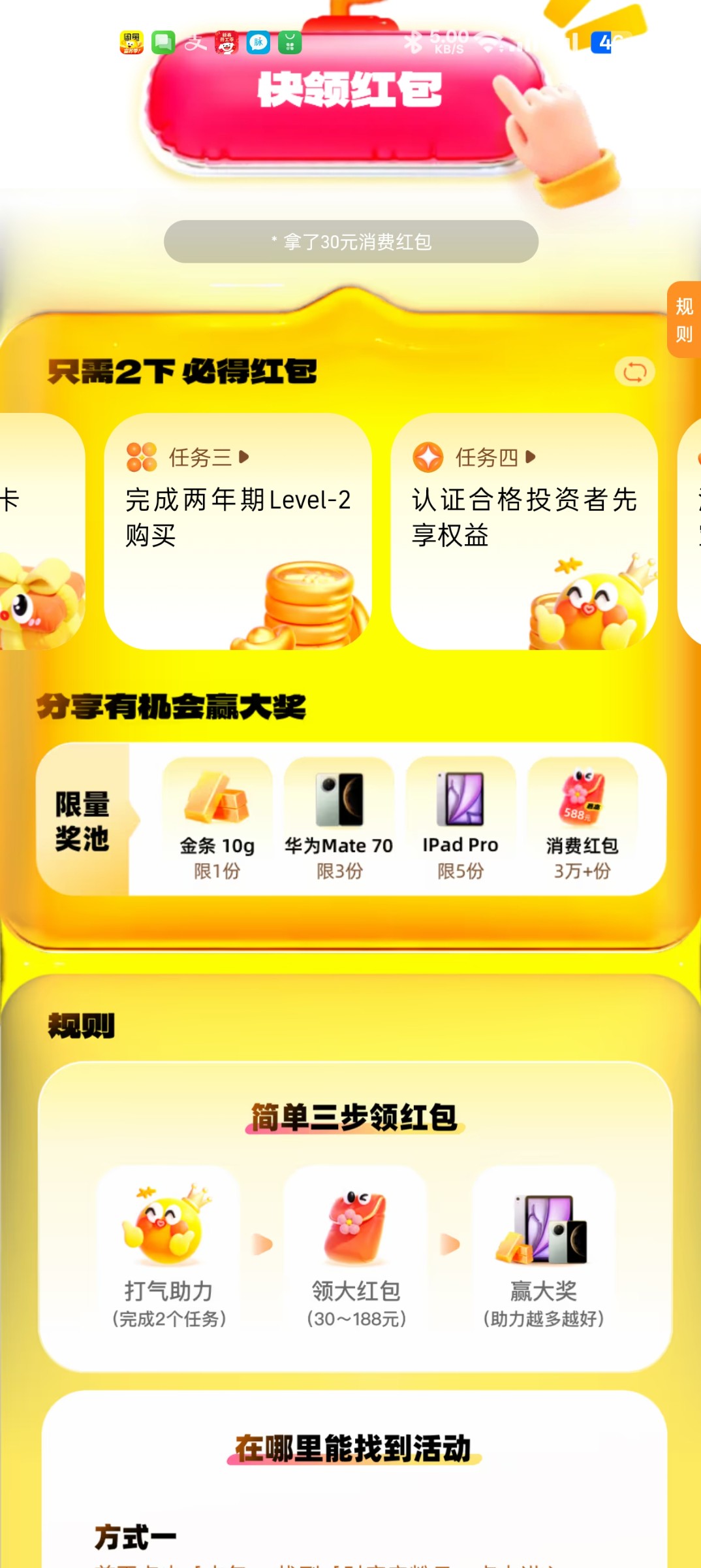 国信证券那个红包入口在哪里?我看了他财富号横幅里面没有啊