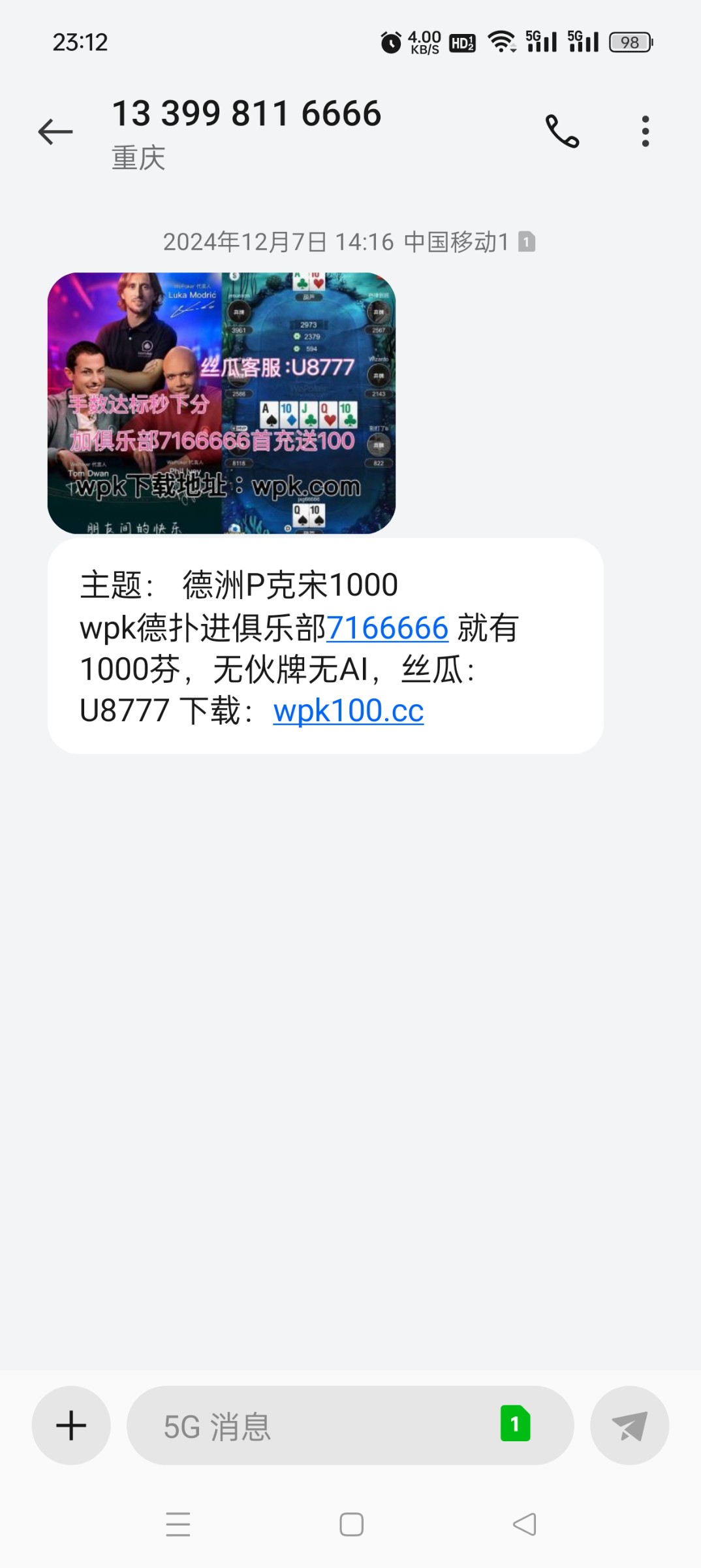 为什么没有wpk的来找我啊?你们是经常玩德州才收到的短信?
