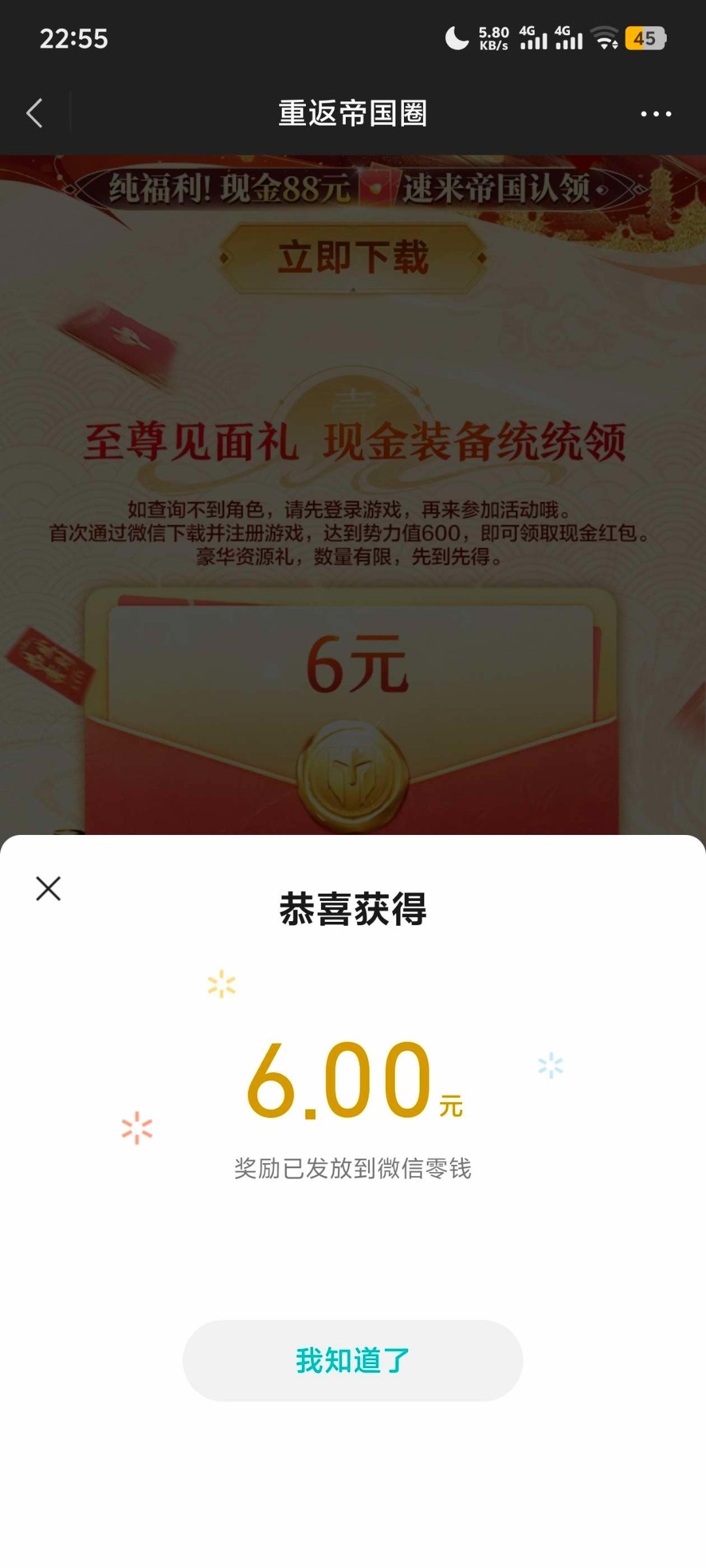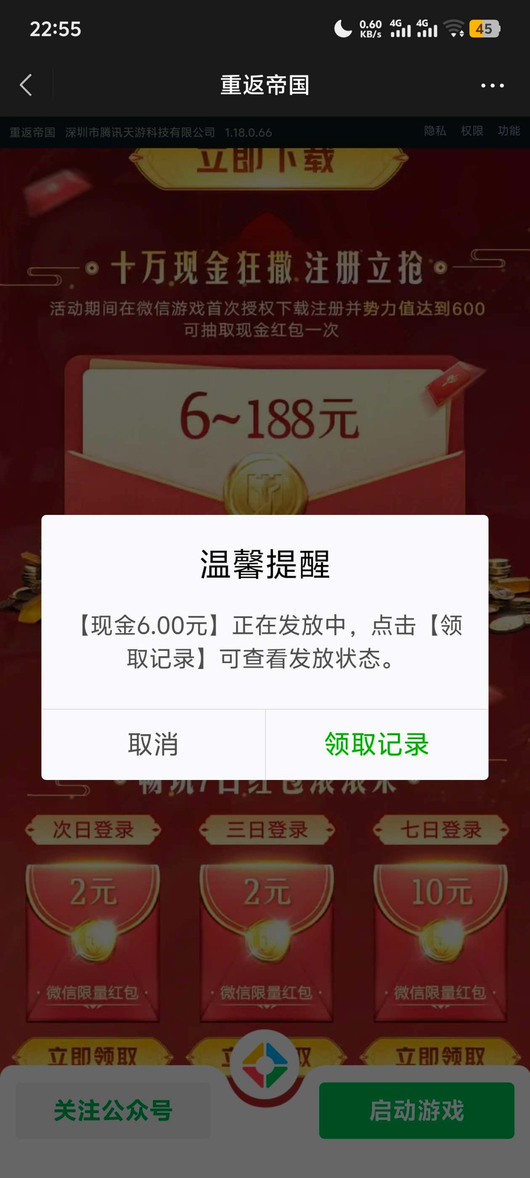 微信游戏搜索重返帝国,新用户升级领红包,实测领到