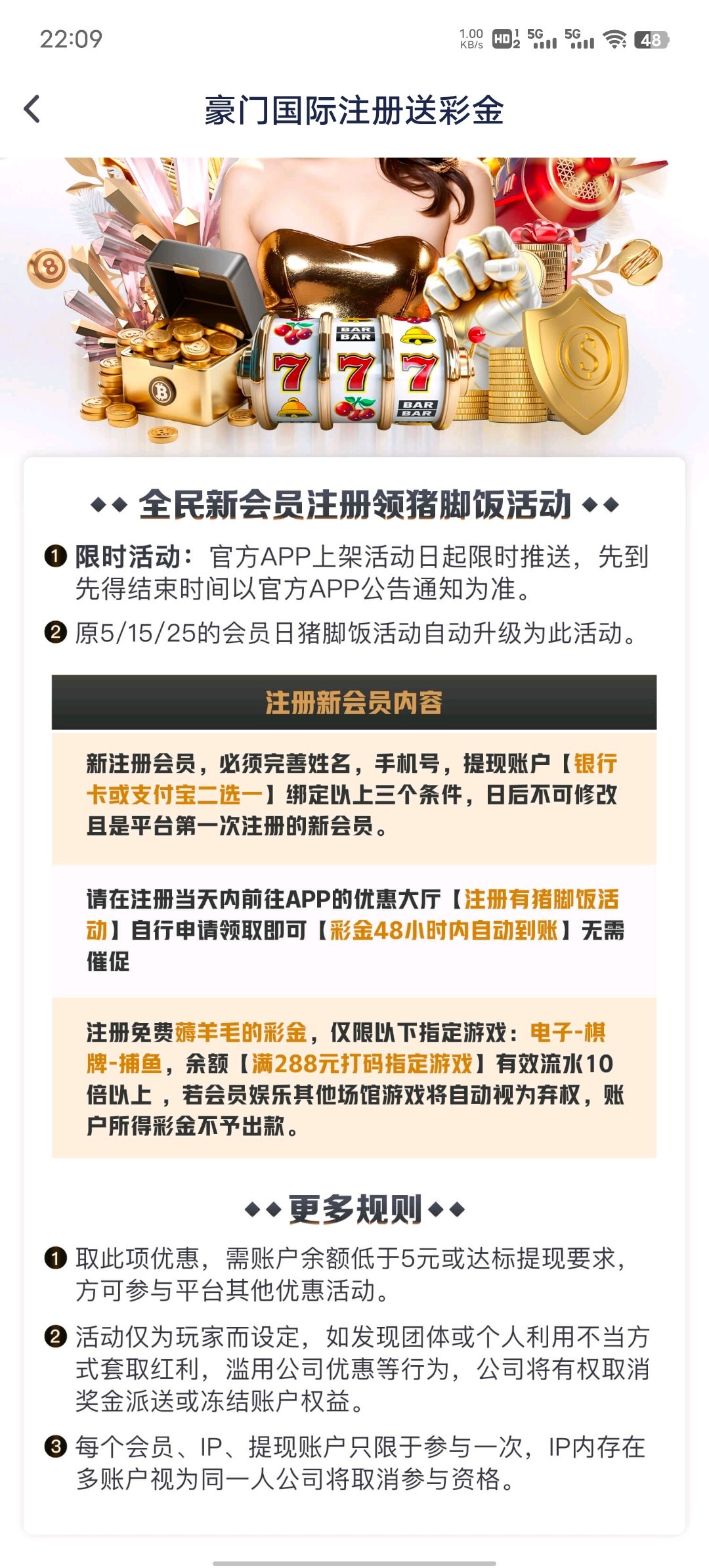 现在注册不需要会员日申请了48小时内到账活动规则看图