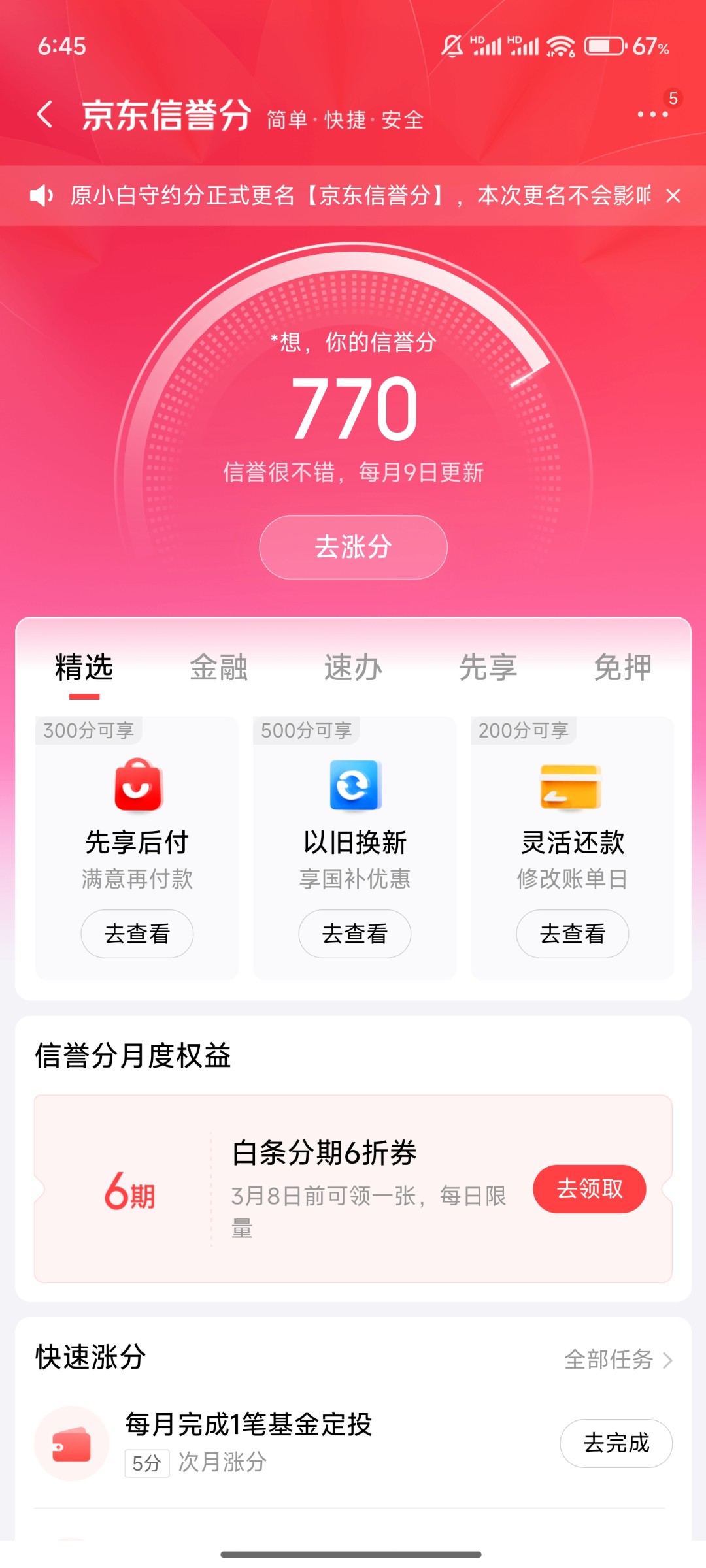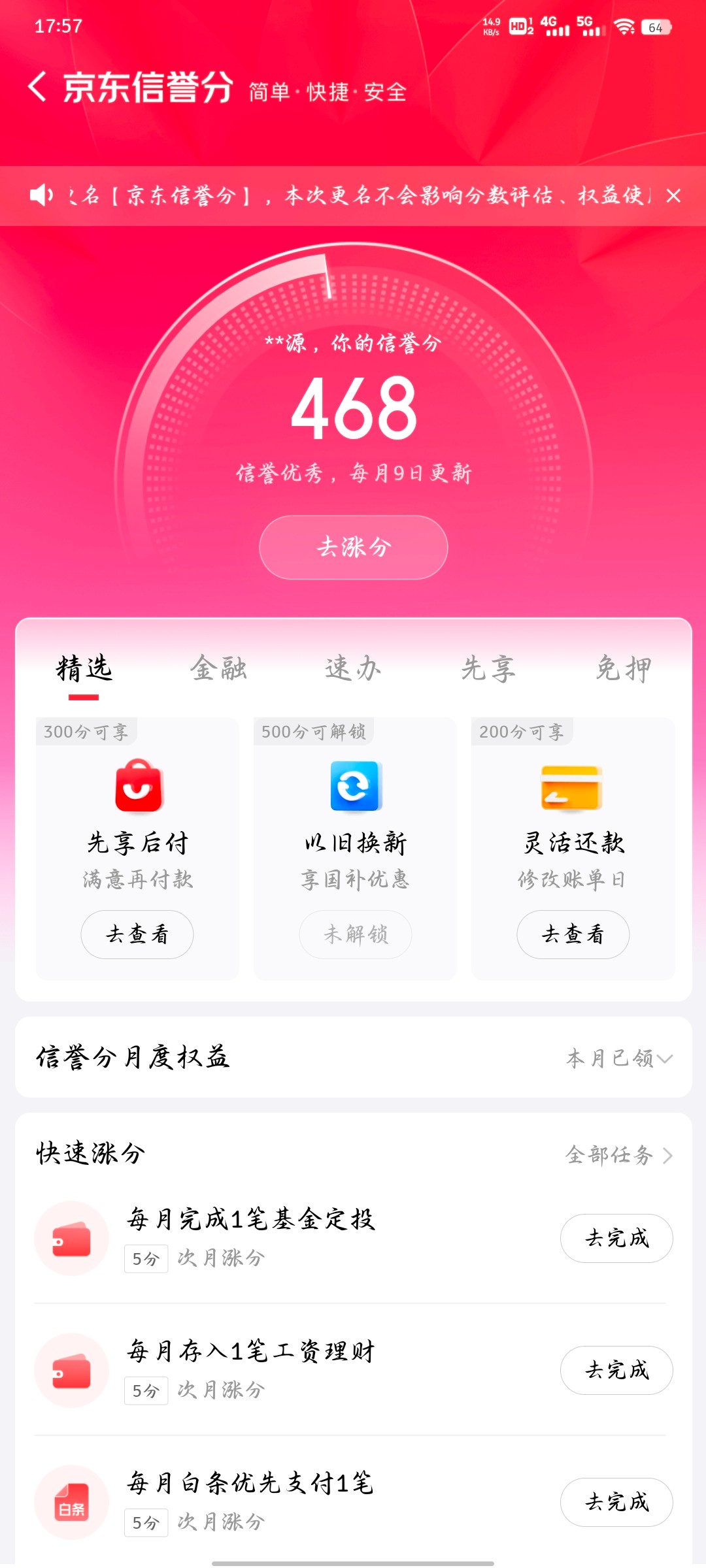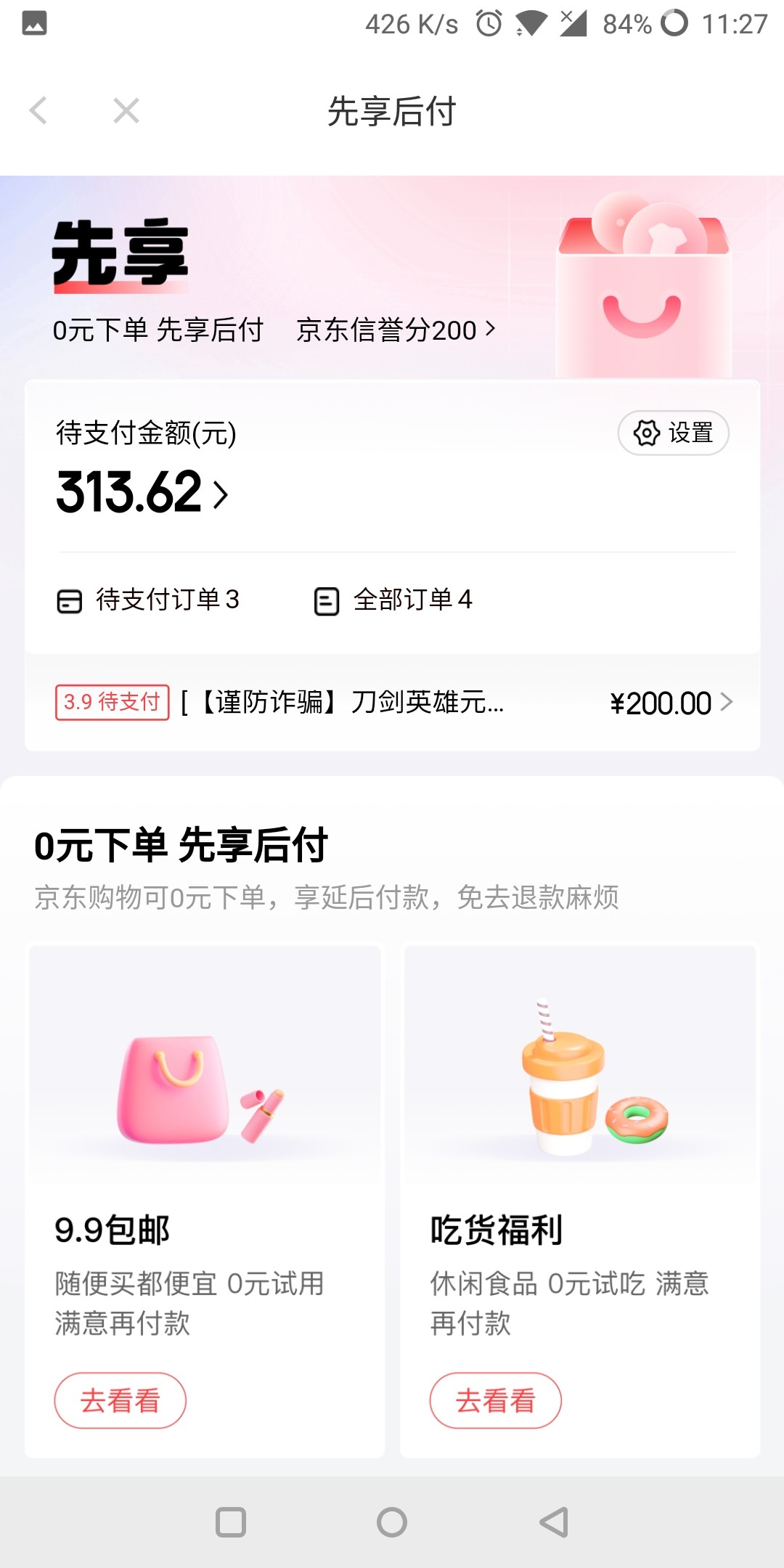 看不懂京东这个,账户注销过几次,重新注册200白条都不给。不是说要300信誉值才能开吗,我第一天点先享后付失败,第二天成功。。开了就有500额度。可以话费充值,也可以在有京东支付的狗庄里面充用。只能用15天。
