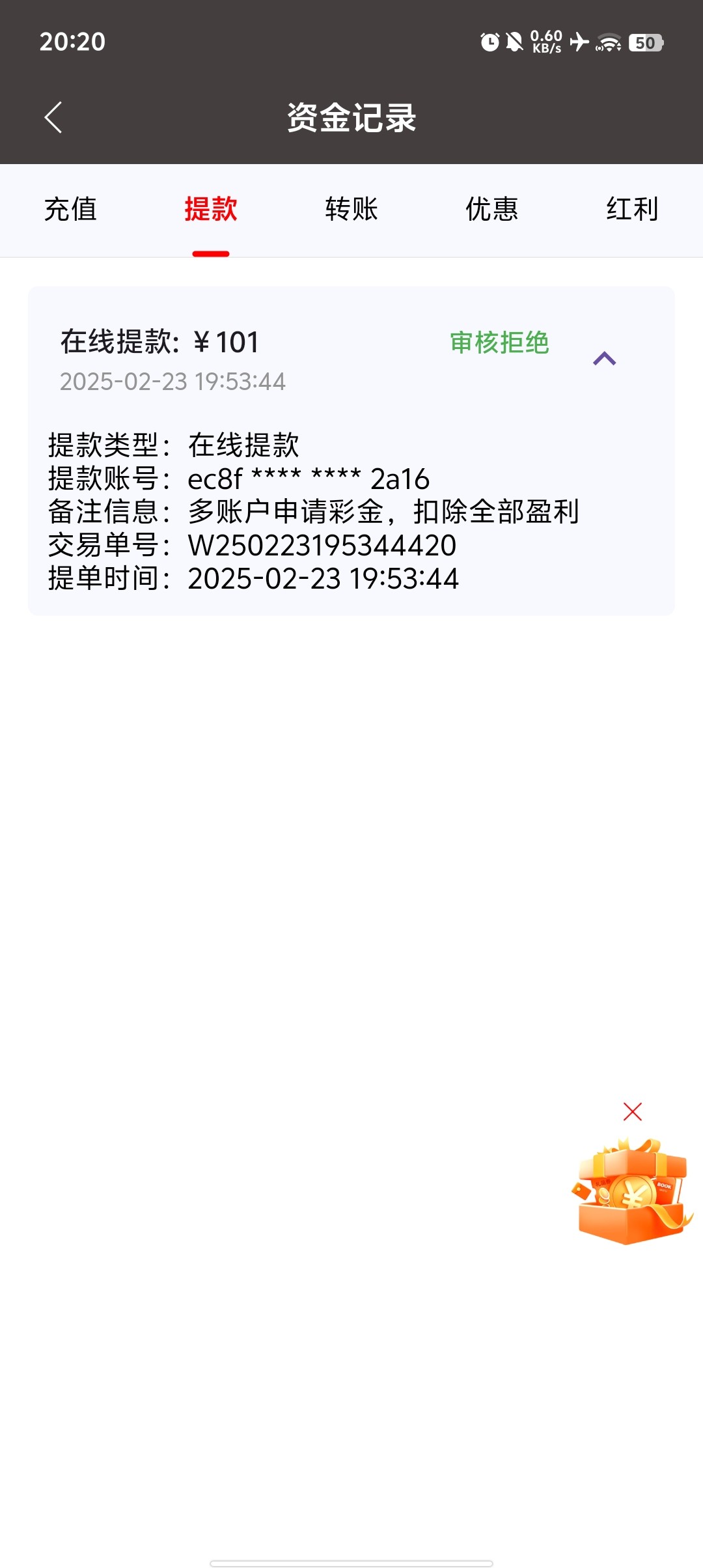我开的流量玩的,就这一个号刚领的彩金,提现直接扣除