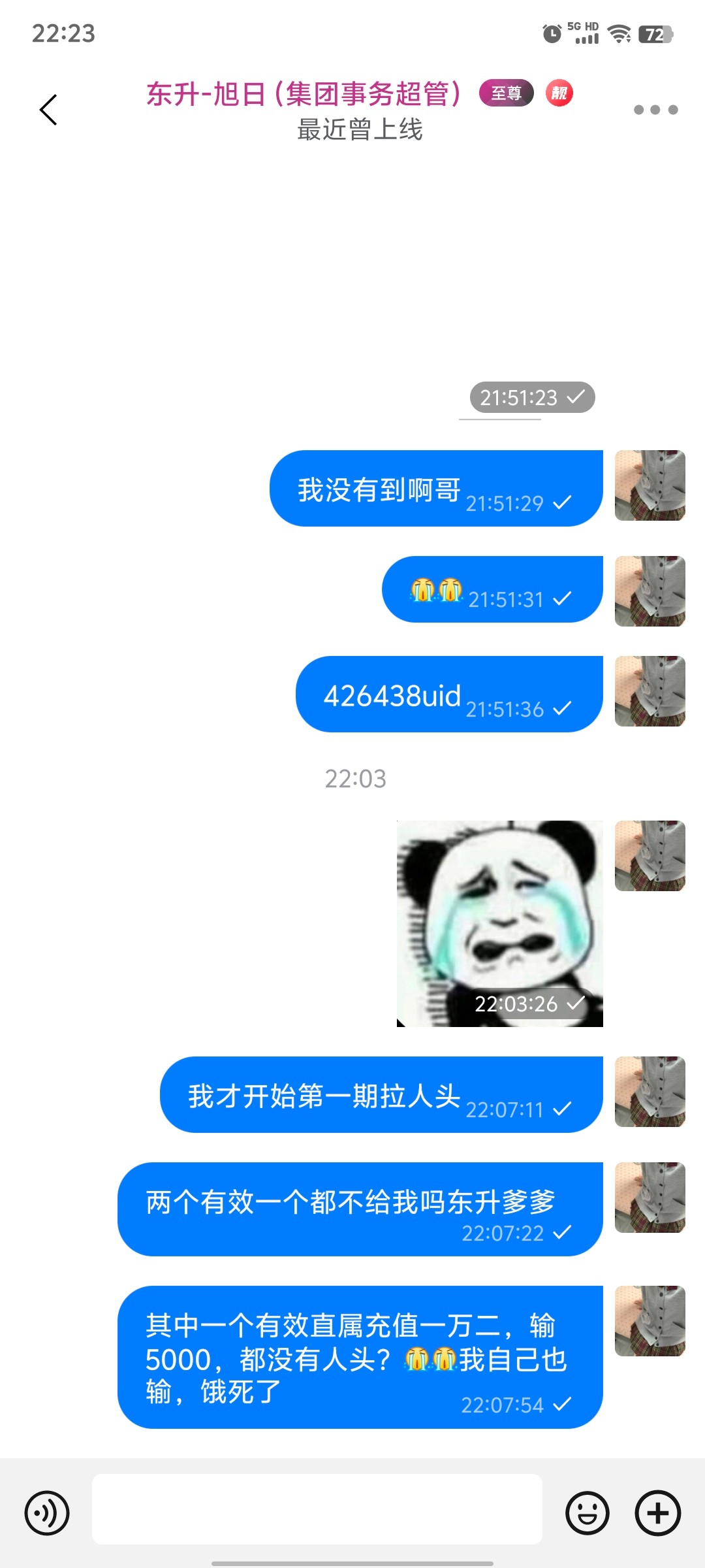 黒台东升优质下级输钱都不给人头费我自己也输找客服和超管直接就是不回信息