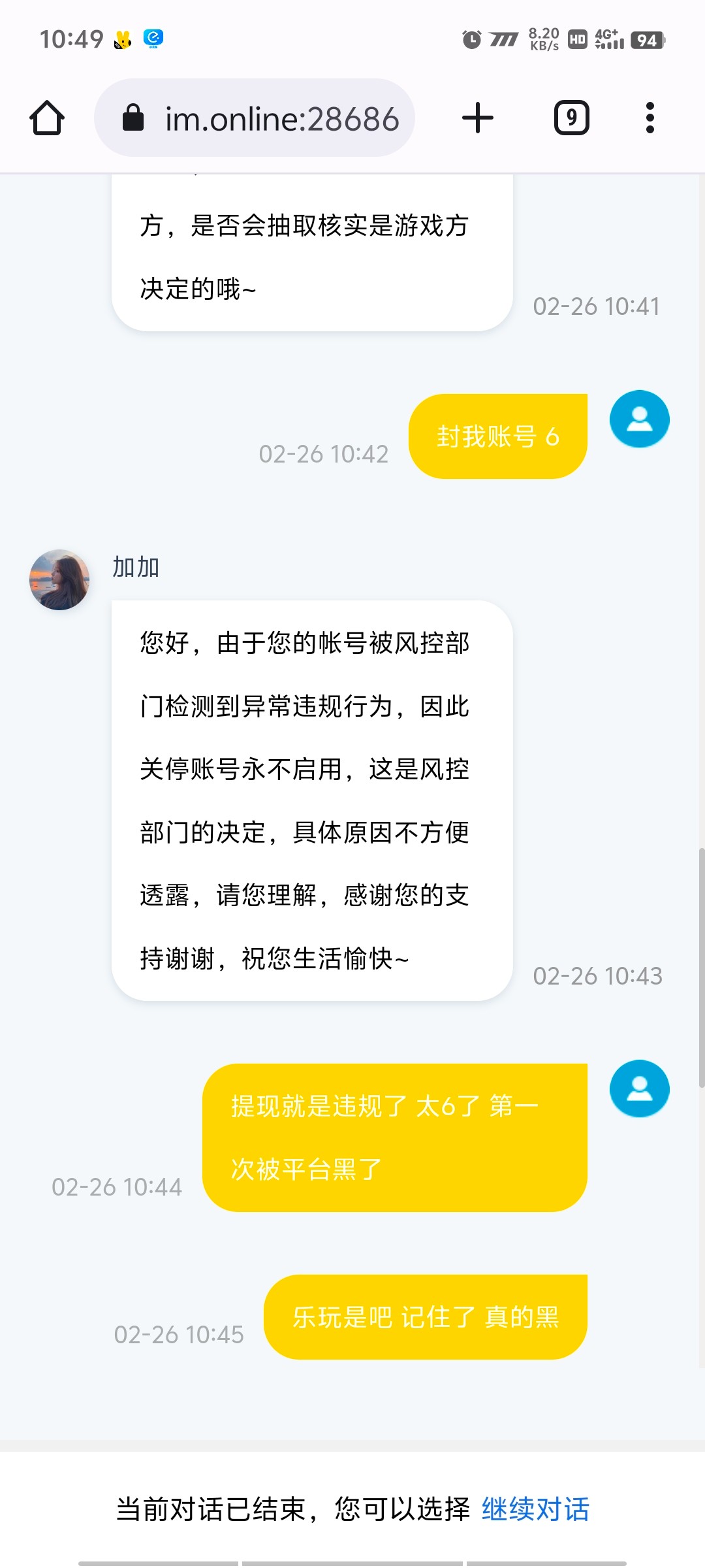封号了