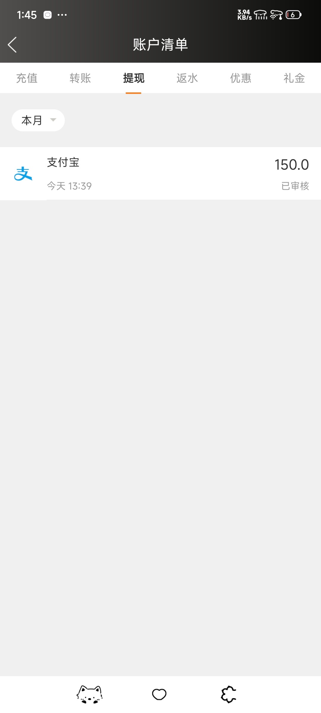 最好提现支付宝啊,我发现都是提现支付宝的提现概率高,就是有时候审核有点久,快就10分钟慢就要等12个小时一定要够流水再提现要不然百分百封号或者是退回余额