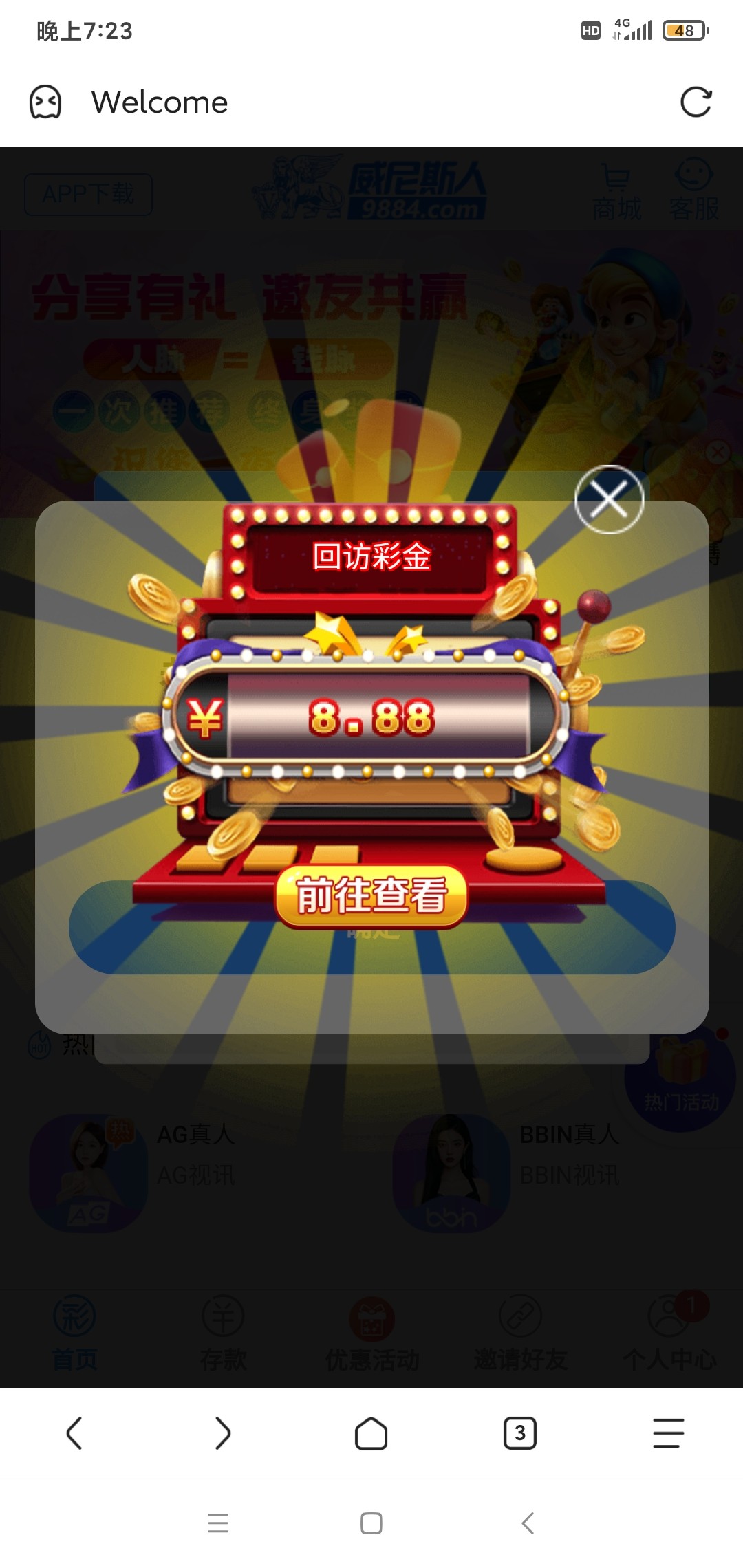 神秘没有,上去领了8.8的回访彩金