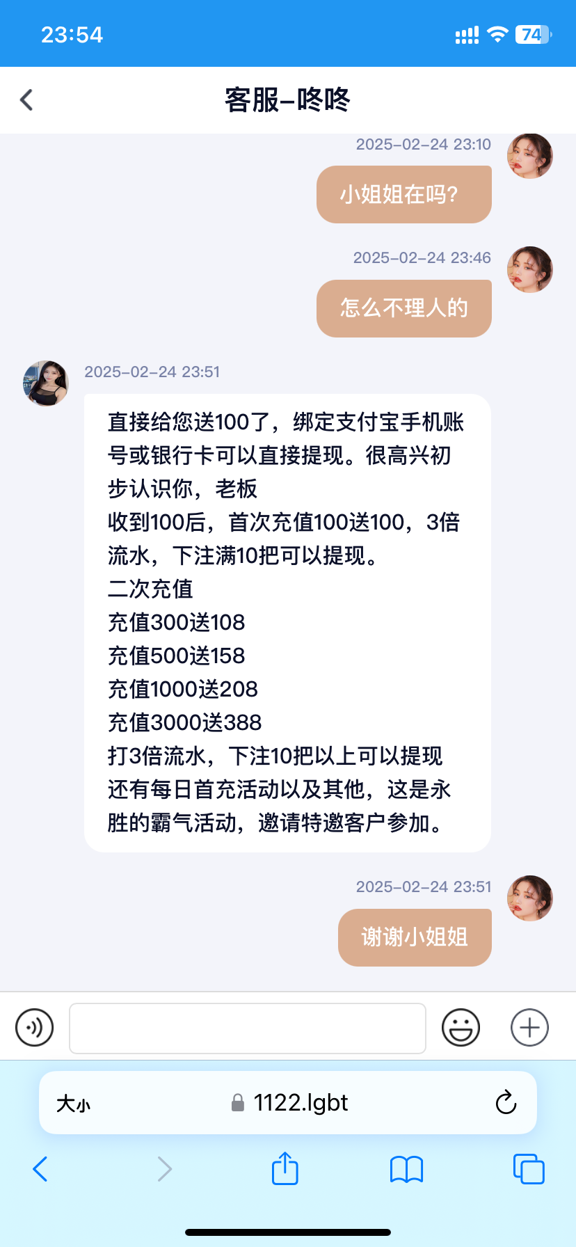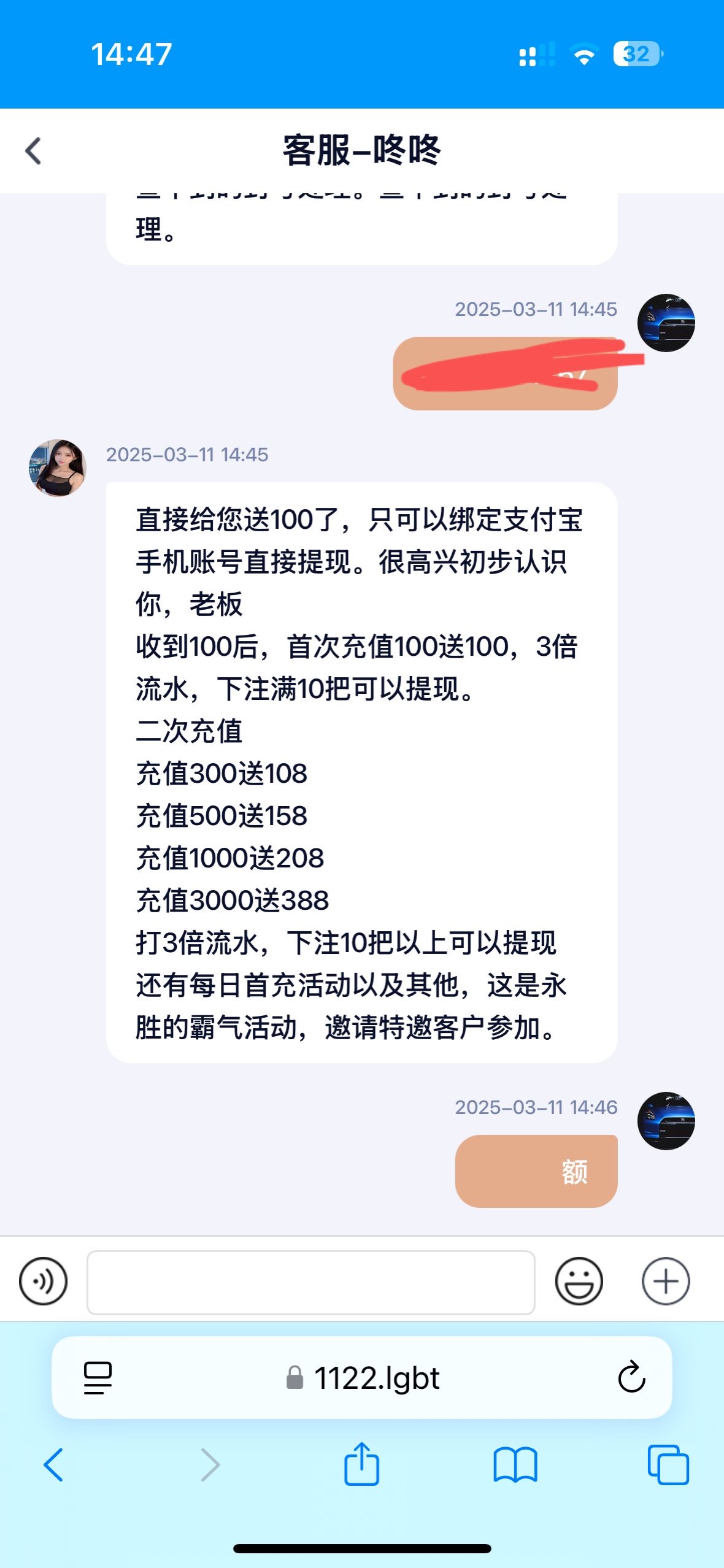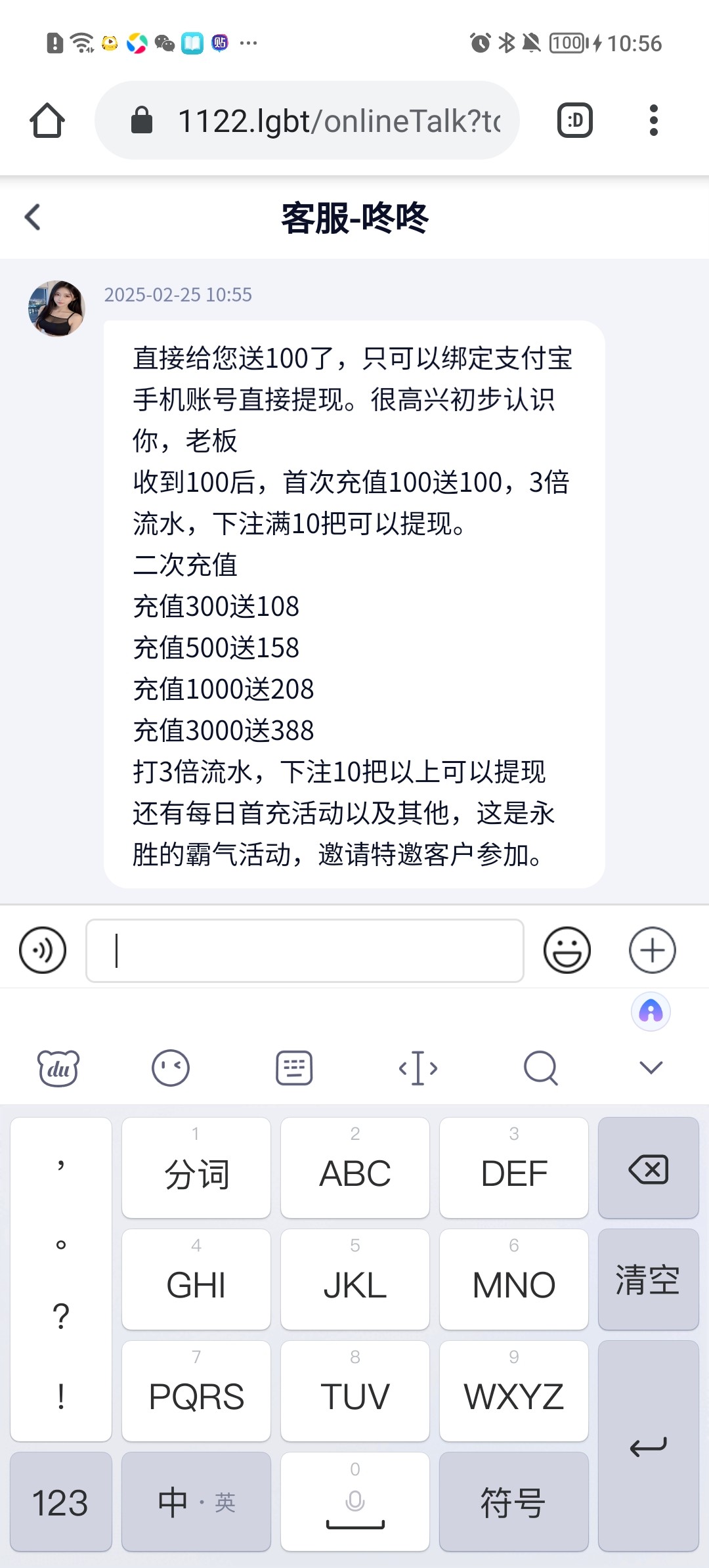 我的好像不是客服送的 客服没说话 我是特邀注册就有一百