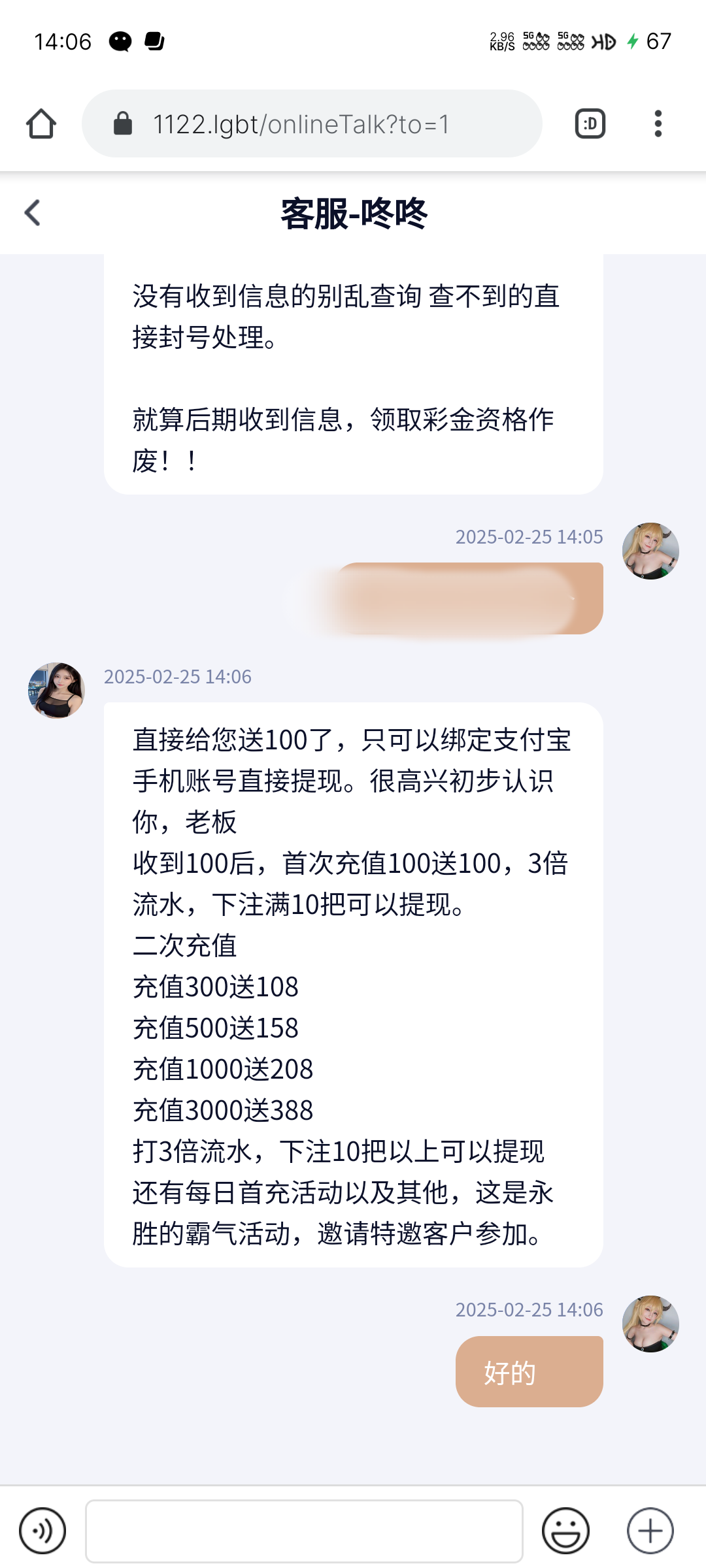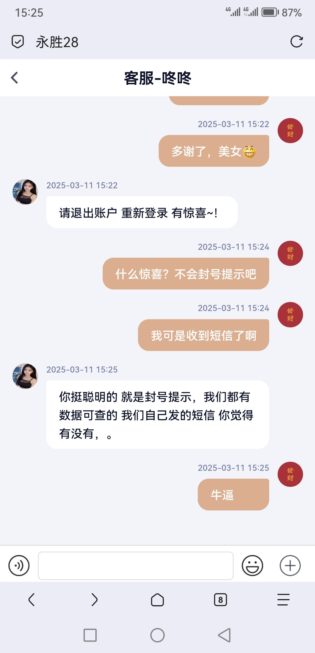客服说,你好,退出客服页面有惊喜。然后封号了。收到短信都封握草