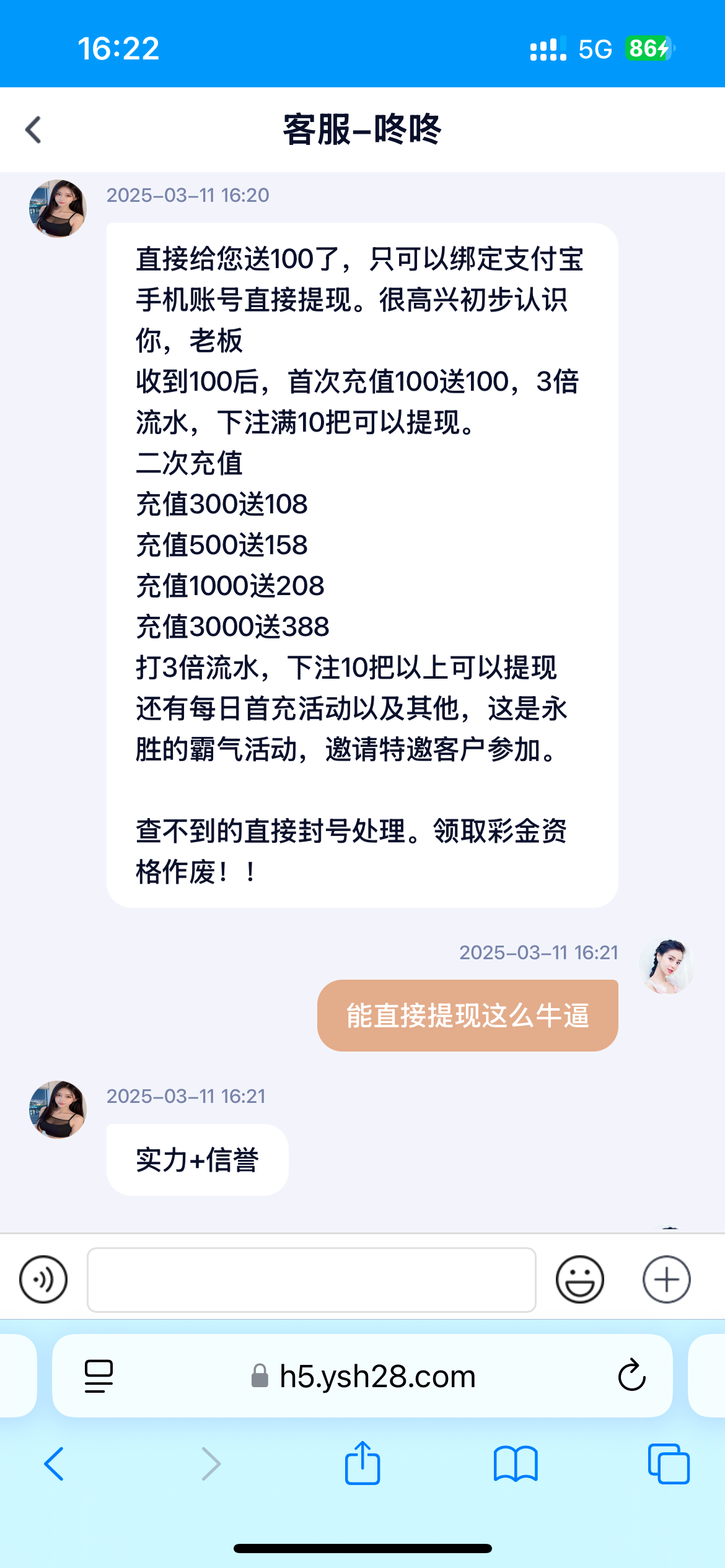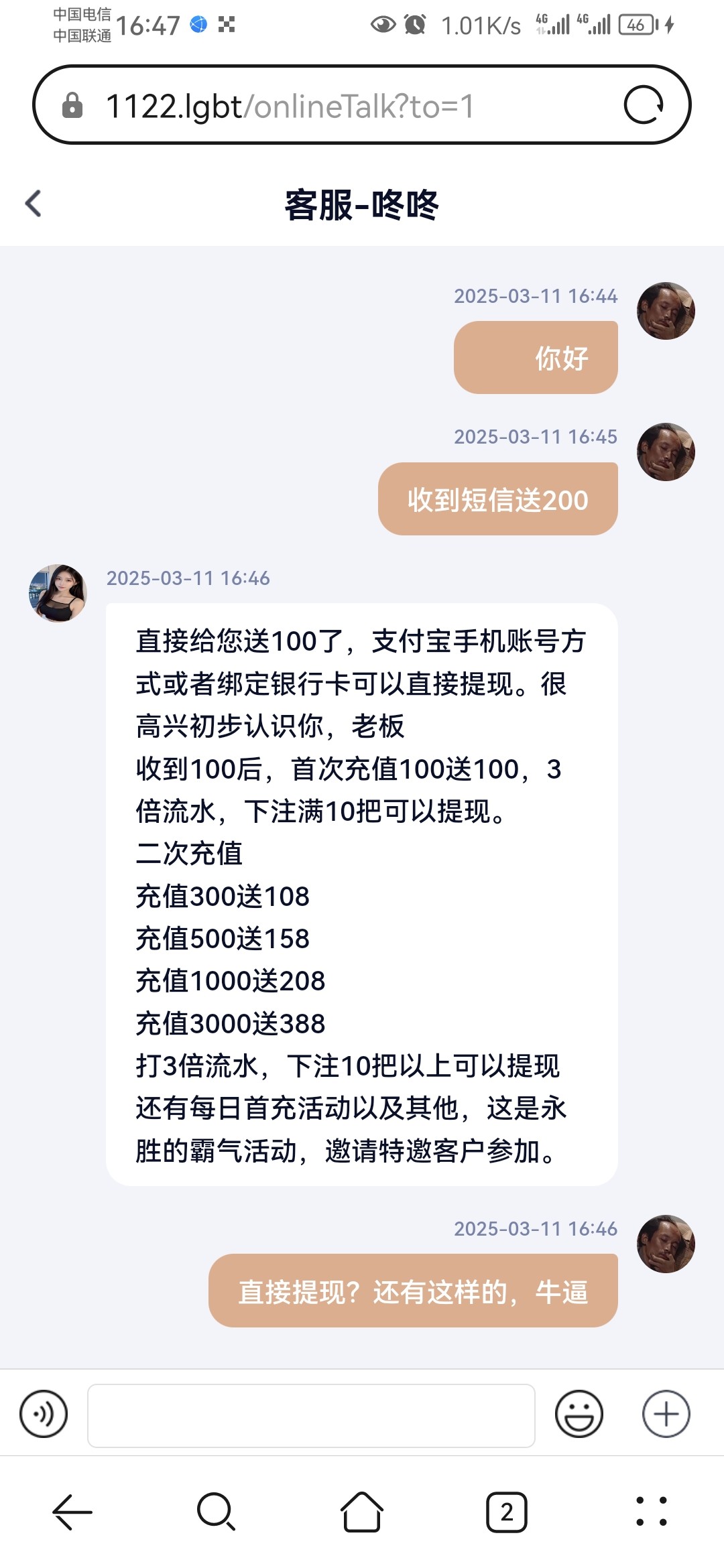 以前有个jnd的台,送了我388他说可以直接提现,我给打死了,这哥们一直叫我要多充值多活跃他后面能给我多安排点福利,手贱把台删了找不回来了