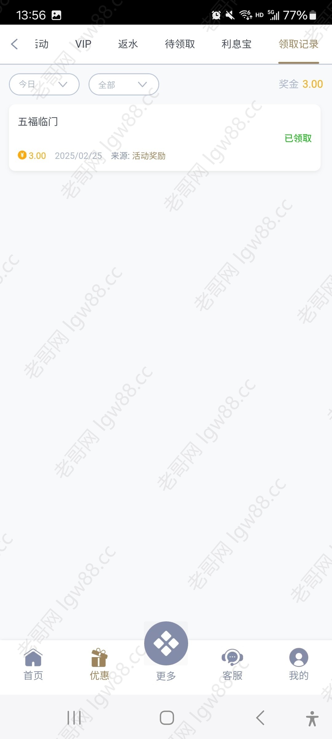每月的5号 15号 25号区间内有过存款的有回馈彩金,这台子十块就能提。链接154.com