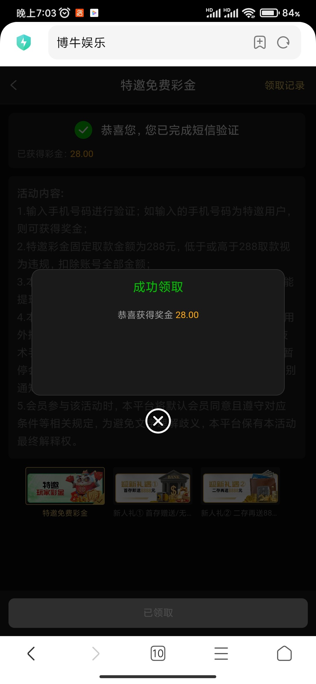 这台一个月前就领了,28要上288,第一次上了260给我吃了,反水领了6块进了两块胡爆260,去女王认证0.4拉了一个小时才满288提现不同名钱包秒到了