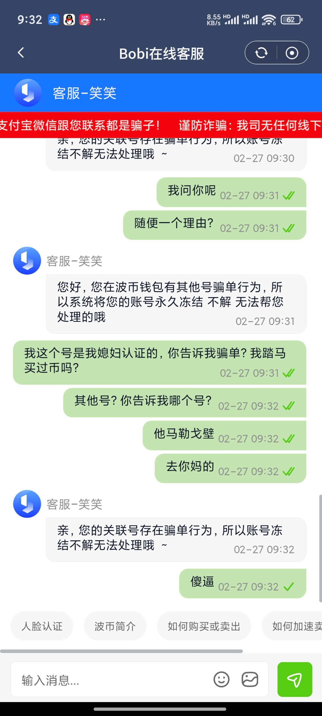 有什么用到账了,说我骗单,真好波币给我封了,平台没封