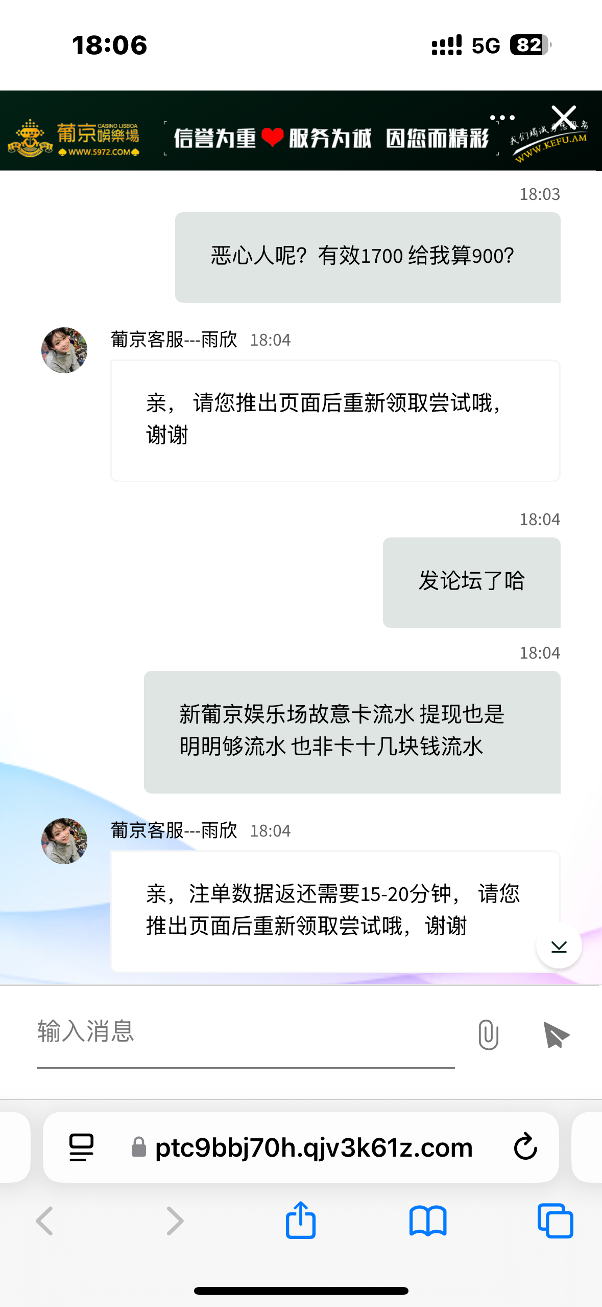 客服与专属客服反馈结果不一致 一边说流水不够 打码不够 一边说叫我查询 我去他妈了个逼 我打了1900 有效差不多1700 给他们看还是说我流水不够 一会说我打码未刷新 我去他妈了个逼 我等投注流水刷新了 我才去领 足足等了有十几分钟 提现也是明明打够流水 提款也显示打码不足 投注都刷新出来了 暗里搞鬼要打1.5倍以上才算你流水 真恶心 注意避雷吧