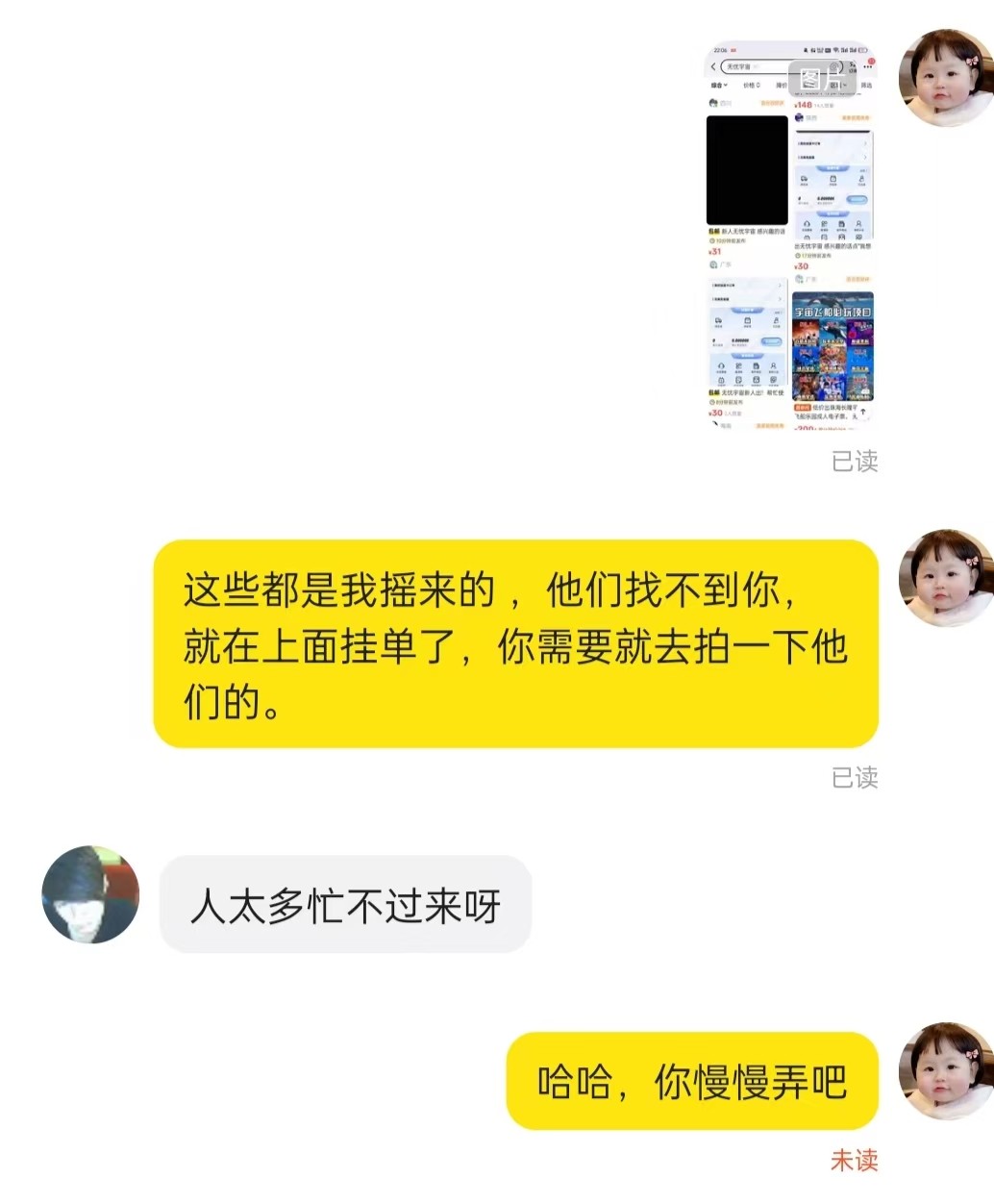 已读不回这商家应该不收了
