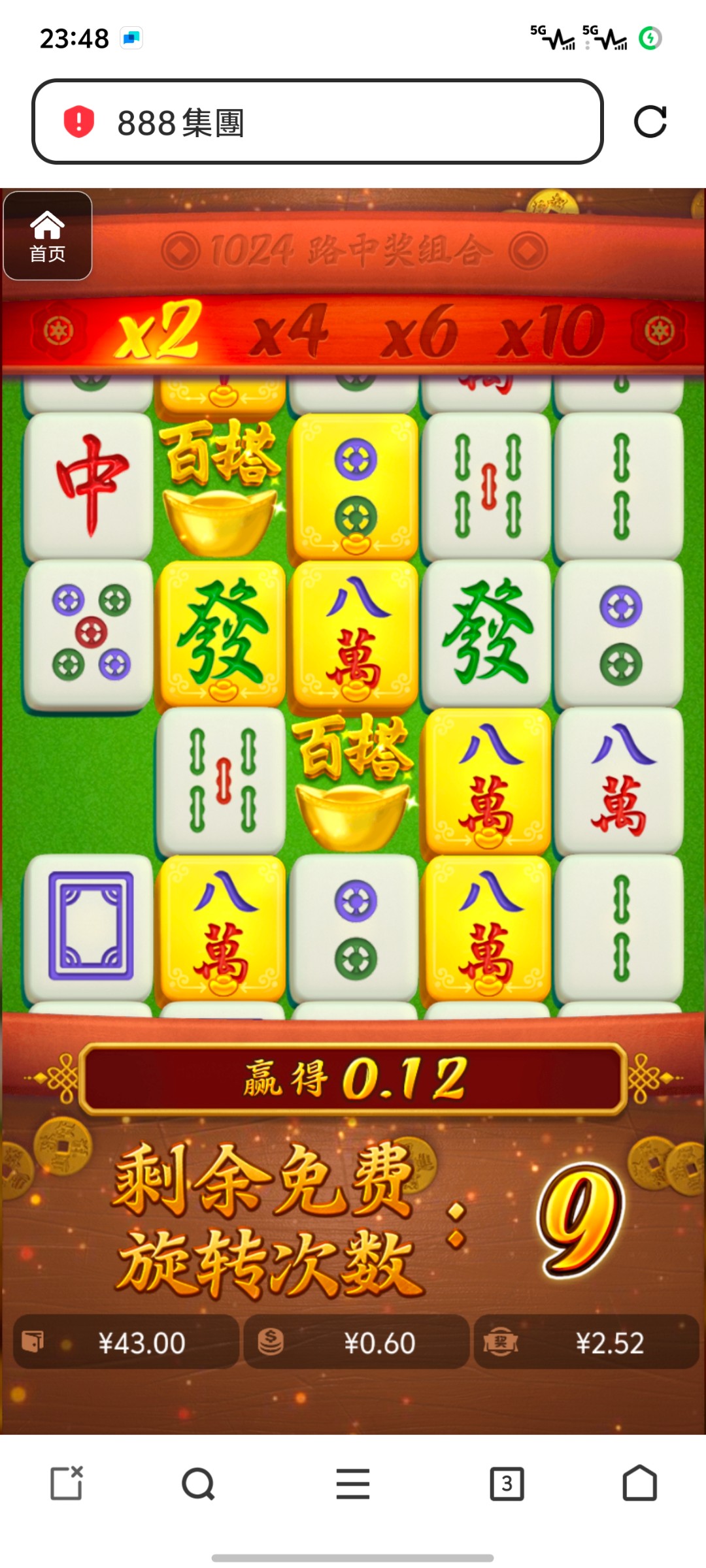 被楼主害惨了,月初3016送的月彩金50上了100想着留着吃饭,看到你这个帖子,买了100币,充38进去,打了127流水麻将拉了300次进去一次胡,4毛爆了1.6,挂壁,领了38,拉女王,298次进去胡了,4毛爆了2.6,剩下62冲进去,拉足球打了88流水挂壁
