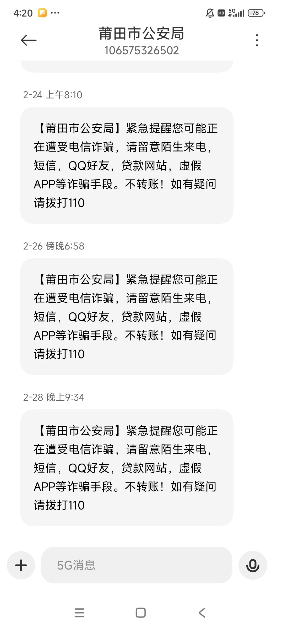 我不接境外电话都一年了,甚至连境外电话的那个业务都关了。煞笔反诈还隔三差五骚扰我。连短信链接我都不点的。真是操他妈的。如果这还叫我去派出所,我可能会来点极端,带把小刀
