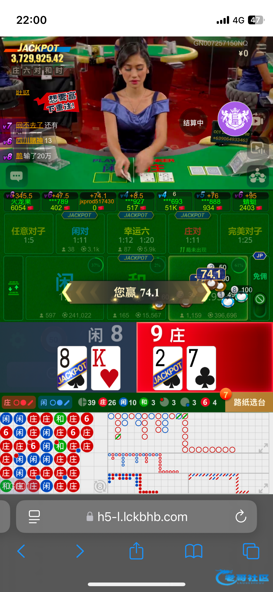 谢谢老哥送的18本来拉麻将拉到90一直上不去剩下74去打百家乐。不小心按到梭哈看到对面是8点以为要挂逼结果还赢了