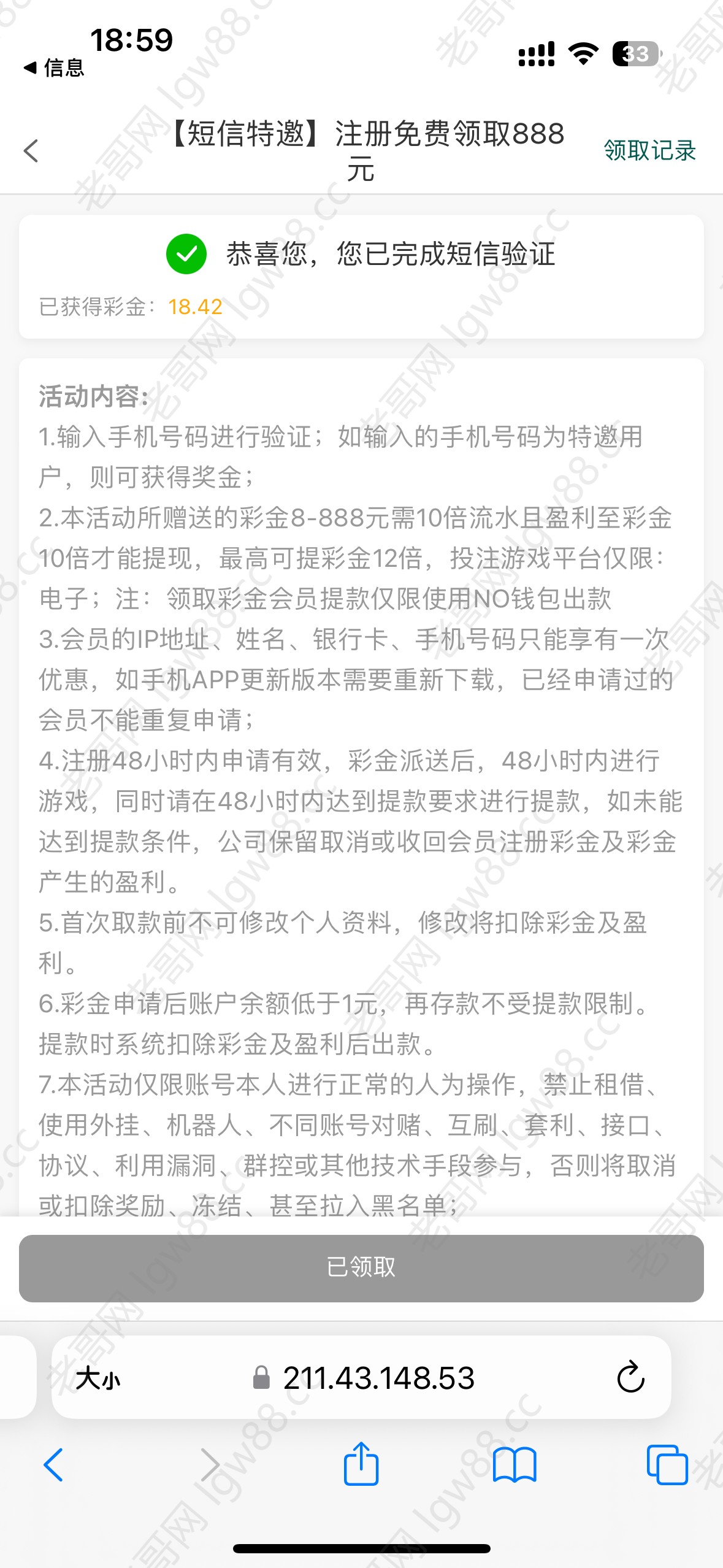 收到短信还没有领的可以去填号码自助领取一下