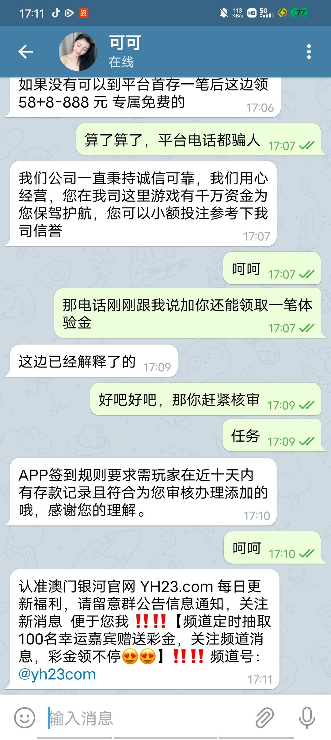 不用想 注册就打电话来说送58体验金 和上面那个88银河一样的套路 黑台