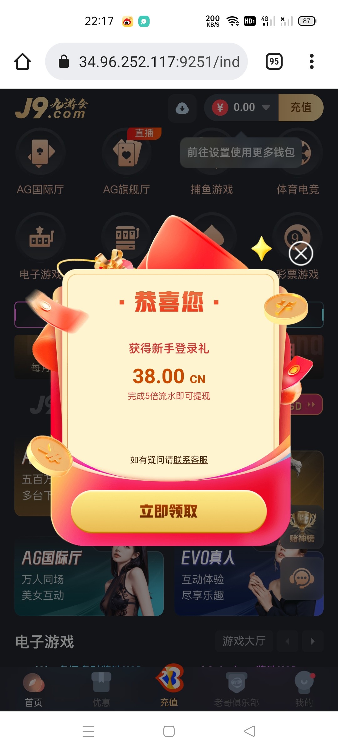 我是注册很久的号了今天登录上去就有,这个新人礼金是登录上去就有的,没接到电话,没领取过的老哥可以去看看,应该是每个人都有一次,提现要充值最少100打一杯水,我是有两个账号之前撸bc贷的时候注册的(没提过款),这个有两个账号的会不会多IP账户不给提啊,看了之前的帖子有的说黑有的说不黑,有没有懂的老哥说说。