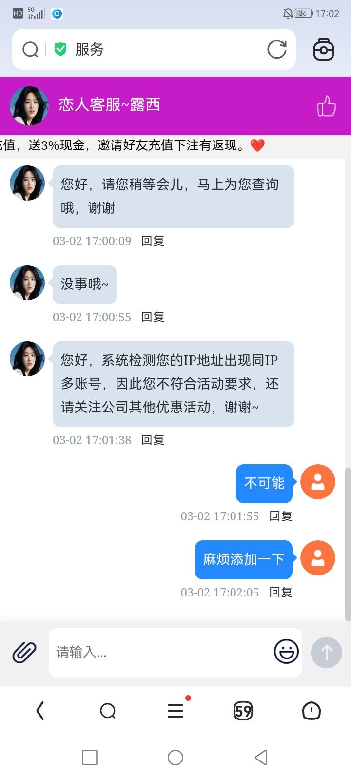 您好,系统检测您的IP地址出现同IP多账号,因此您不符合活动要求,还请关注公司其他优惠活动,谢谢~
