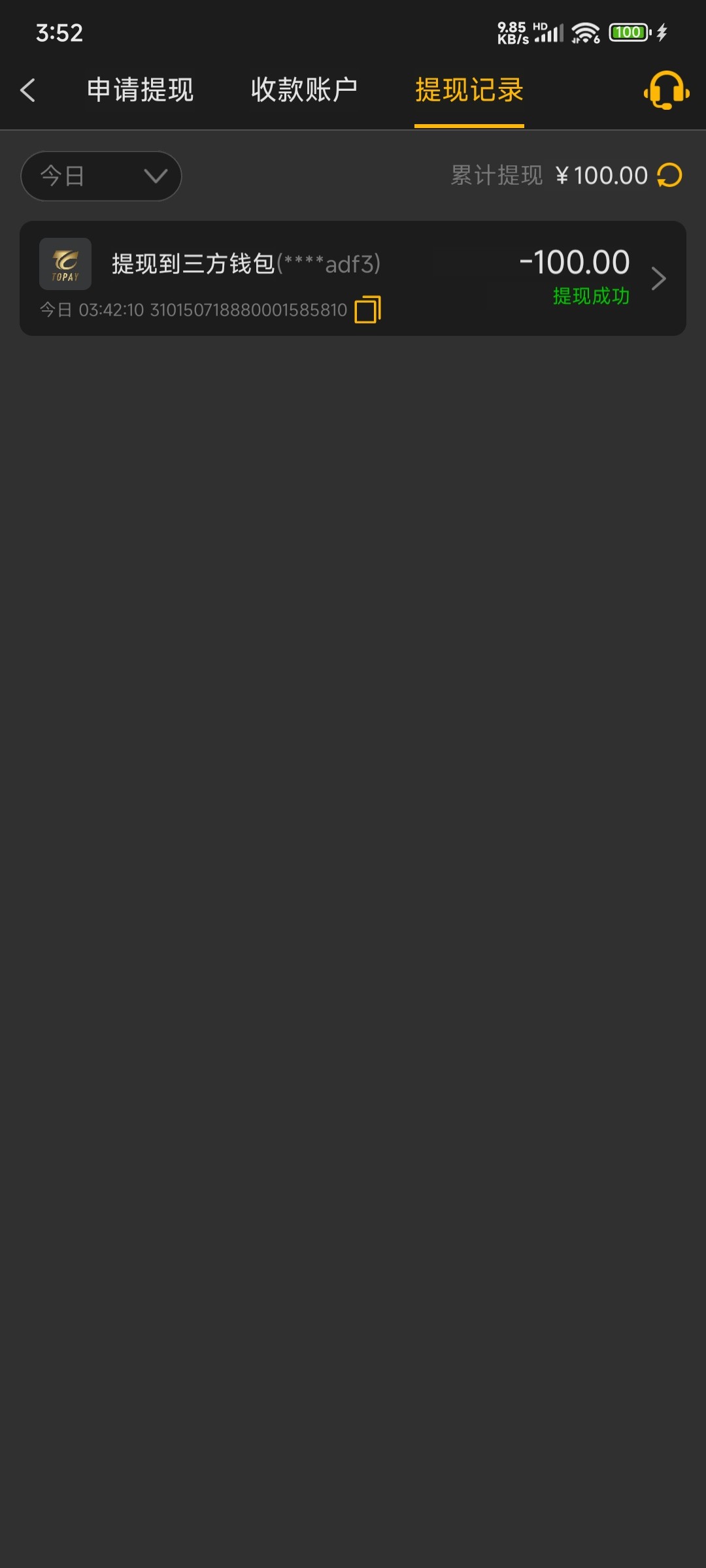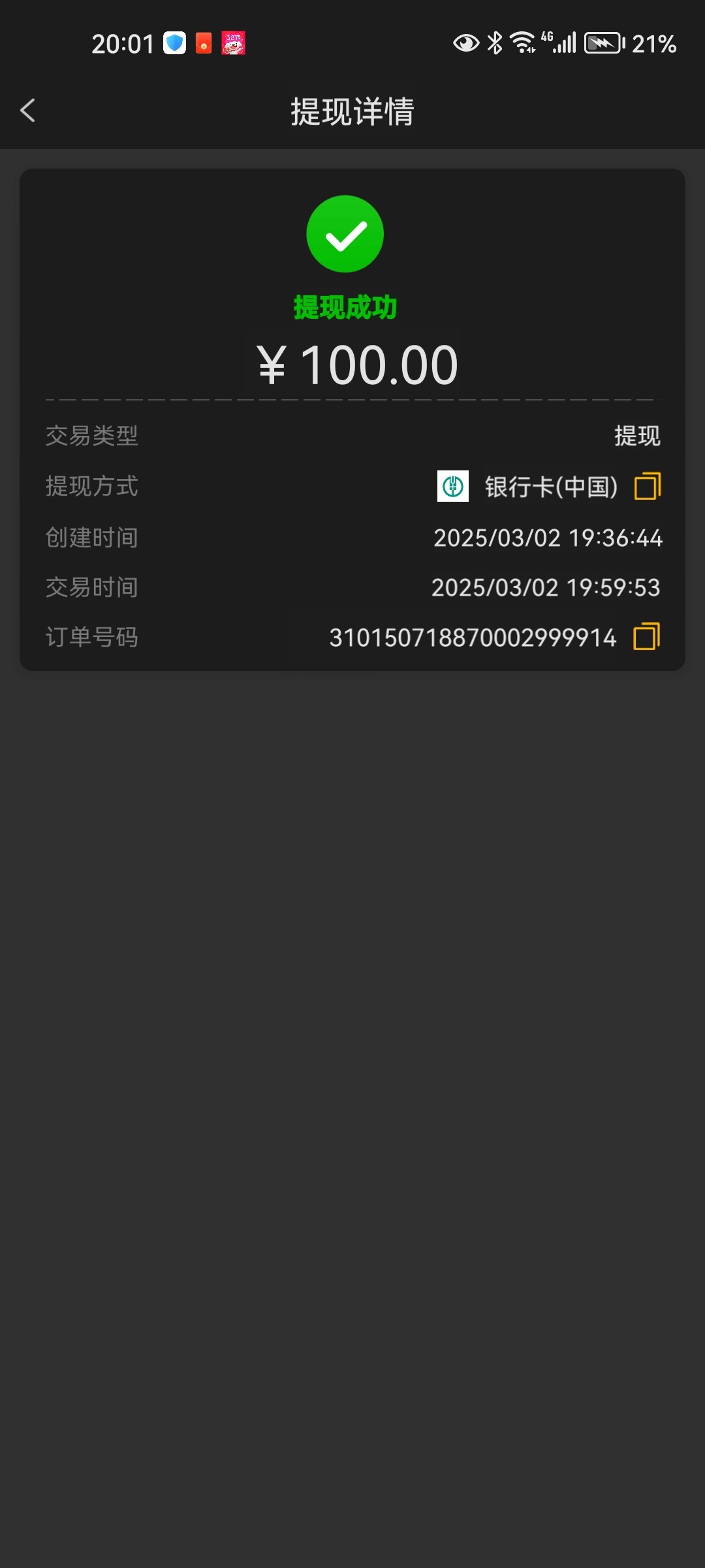 白票一百 到账