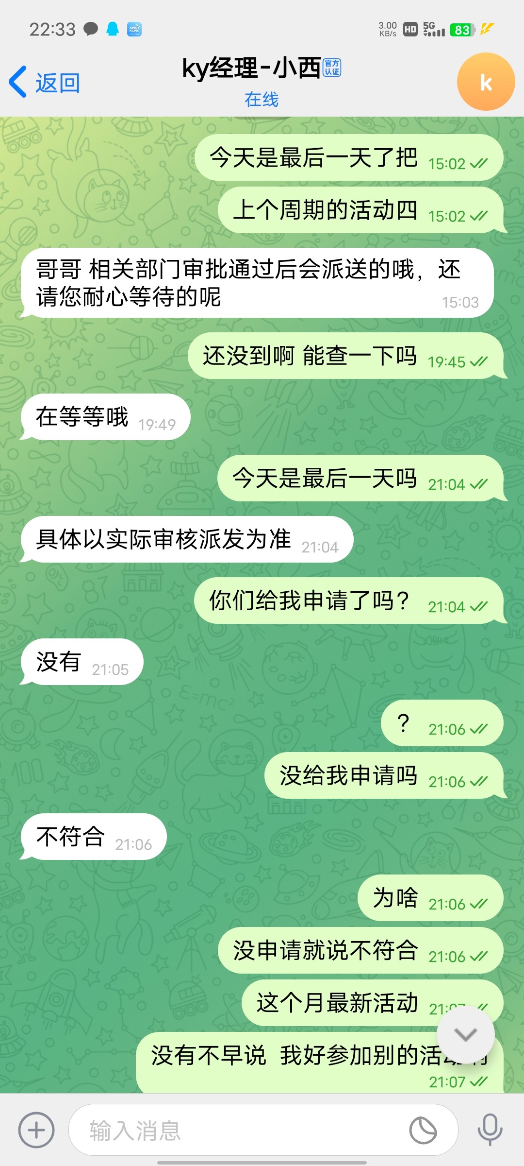 这傻屌专属真几把气人 最少888彩金 没申请还让我等了两天