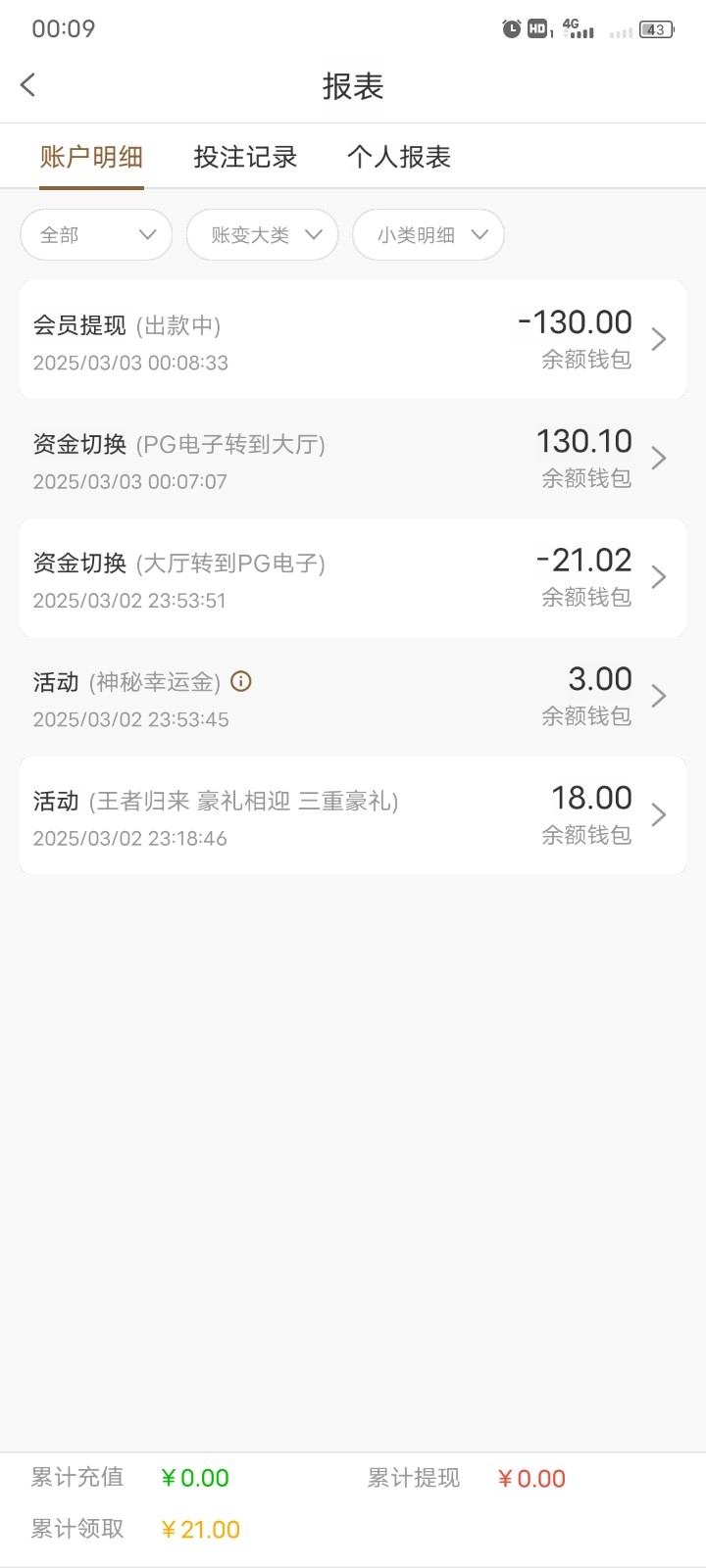 出款情况:自测(