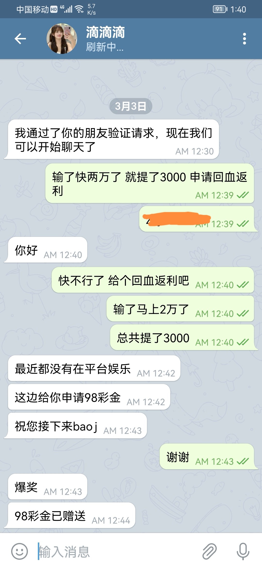我是联系的pop客服 加上后就是诉苦输了太多了 总共碰到三次了 第一次58 第二次68 这次给了98 我是废物 可以我没打出来。 碰不到别喷
