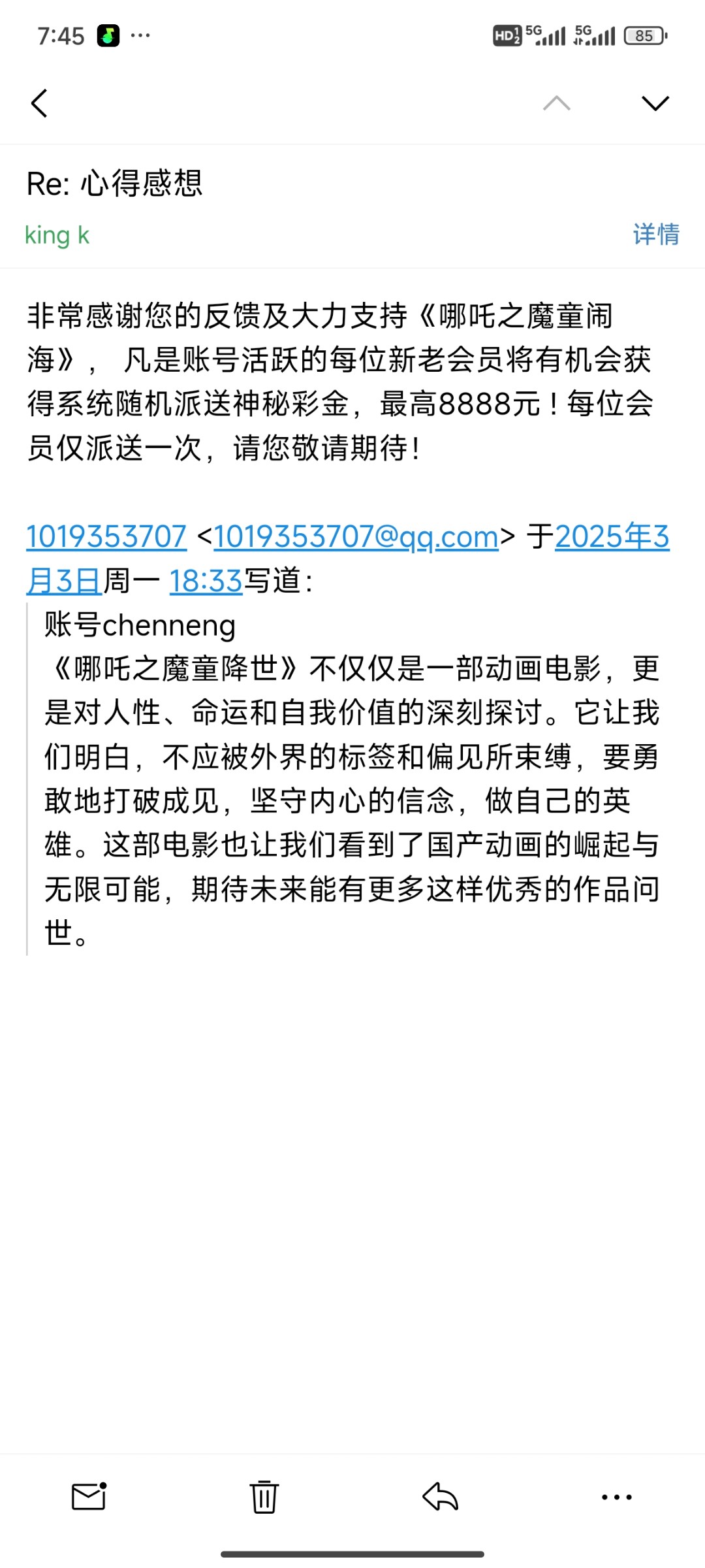 邮件是回复了,就是没送而已