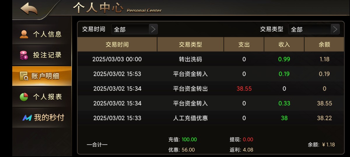 出款情况:自测(