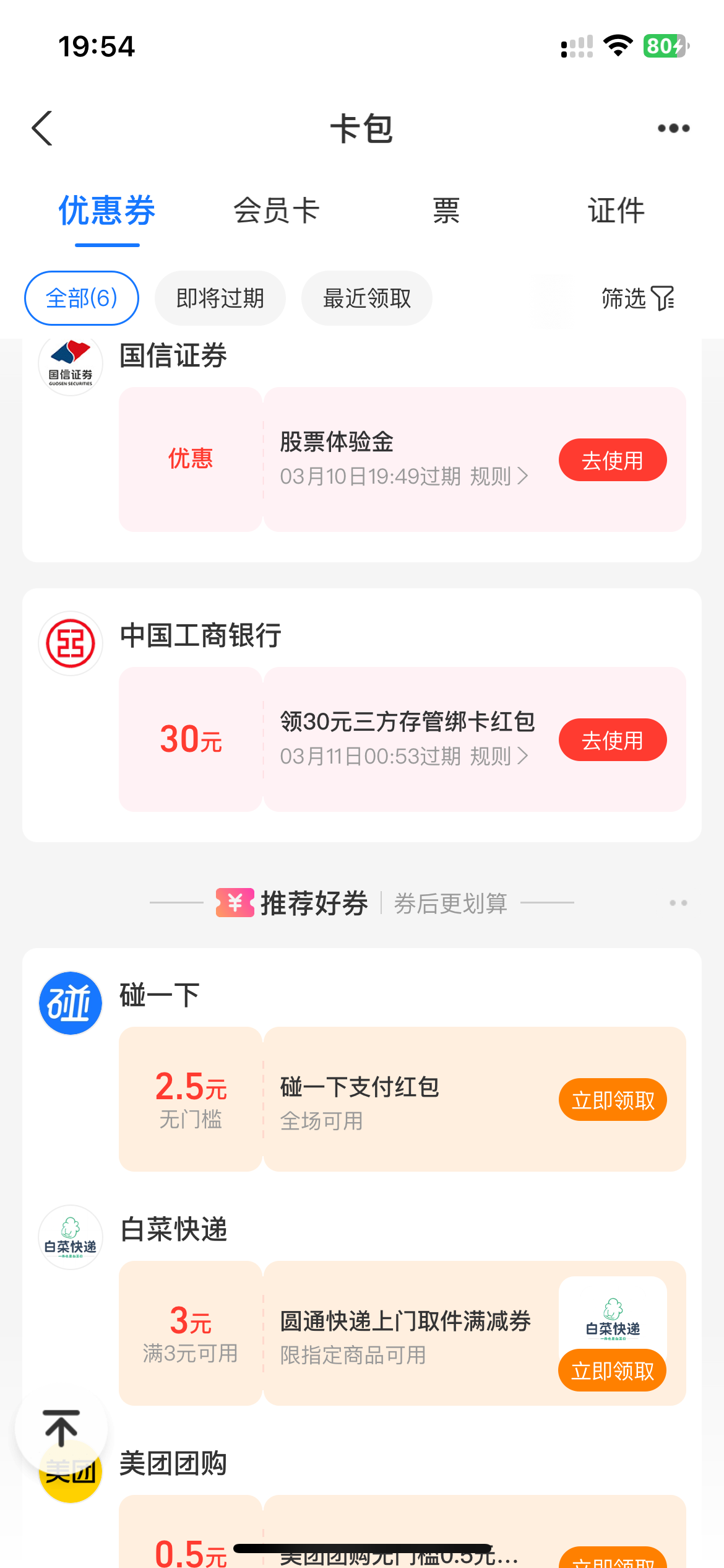 工商白嫖30,有工商银行的去卡包看一下有没有这个卡包,我和我朋友的都有