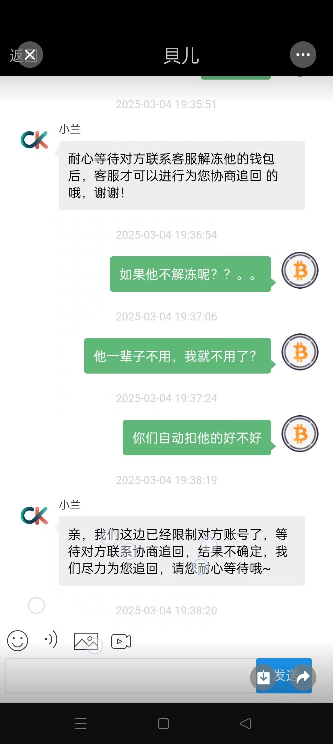对方不放客服会锁他的币,他自己也用不了,不管怎么逼逼赖赖最后还是会话给你