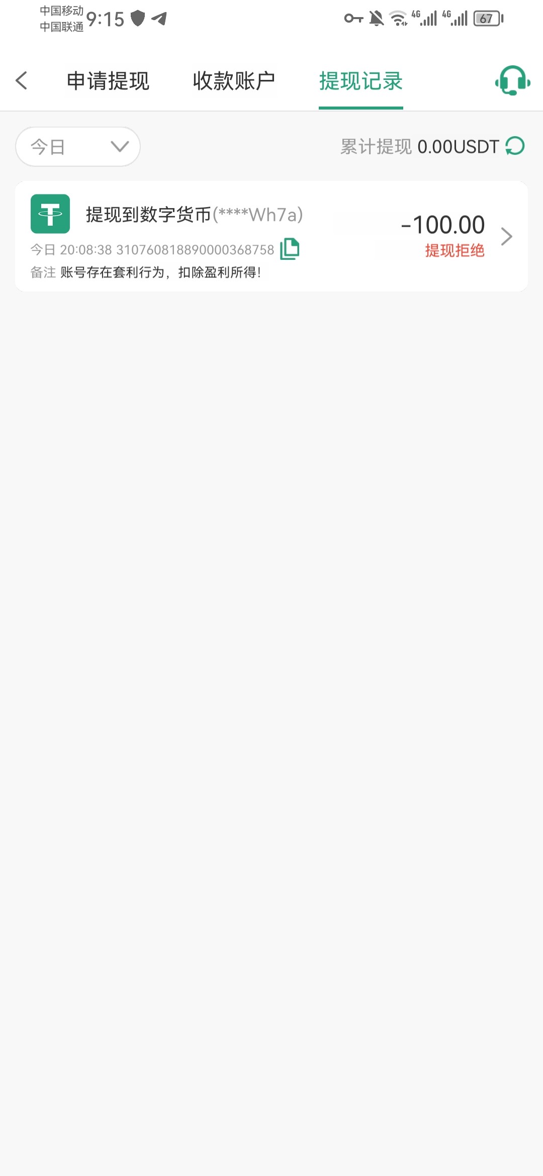 磨完流水就剩15u,提了之后一看规则写着50u起提,没成想还给我到账了
