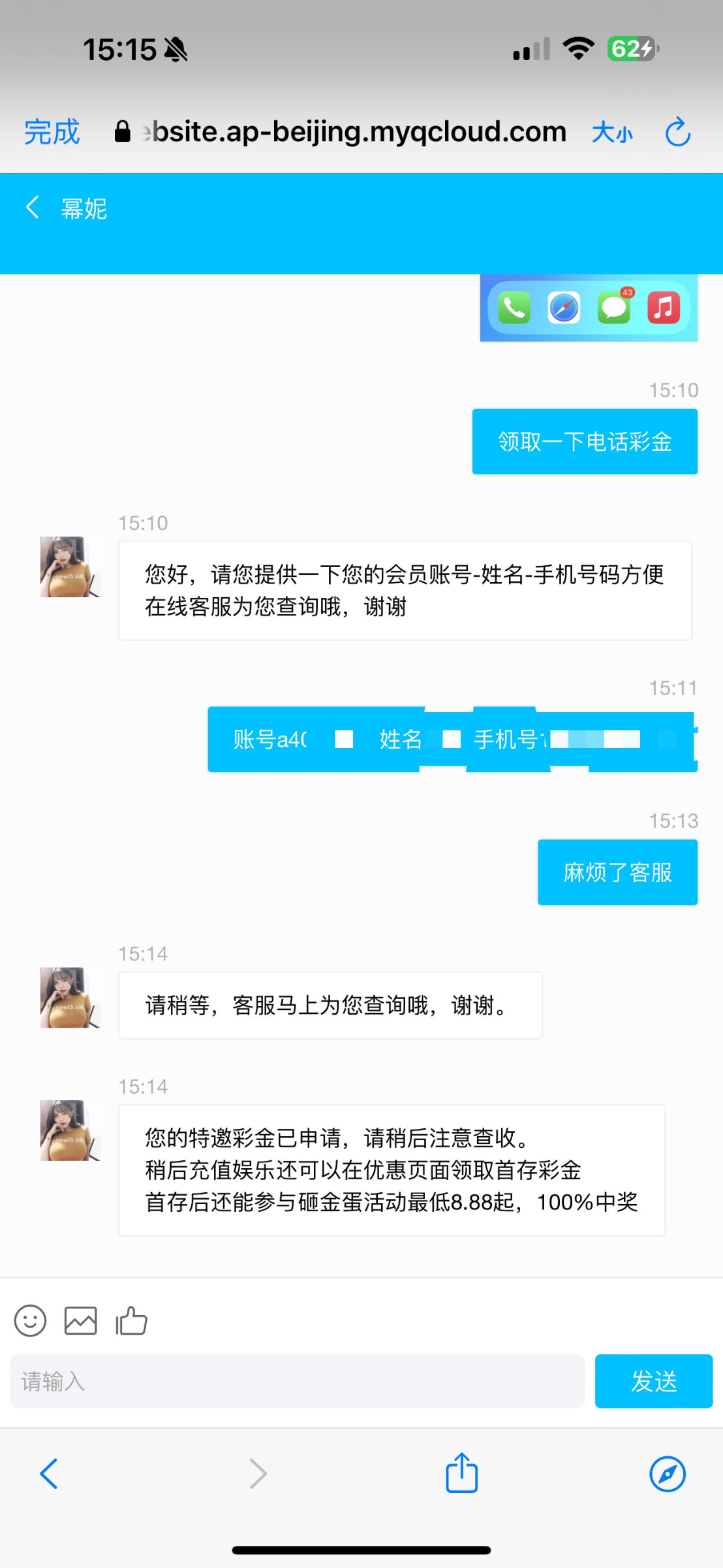 电话彩金 找客服申请 需要下载app 报手机号➕账号就可以了